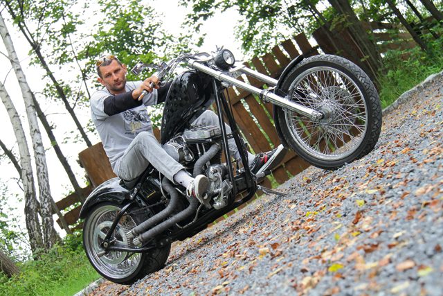 Marek Mickiewicz prowadzi w okolicach Brzeska warsztat o wiele mówiącej nazwie BT Chopper. W ciągu kilku lat działalności powstało tu sporo zacnych maszyn. Część z nich znalazła zagranicznych nabywców, część jeździ po naszych szosach. Podczas odbywających się rok temu I Mistrzostw Polski Motocykli Customowych motocykl o nazwie „Bomber”, będący dziełem BT Chopper, zdobył pierwsze miejsce w kategorii Custom. Miesiąc później maszyna ta zajęła 22. miejsce na mistrzostwach Europy, co jest, jak dotąd, największym sukcesem polskiego customizera w prestiżowej kategorii „Freestyle”. Maszyna widoczna na zdjęciach nie brała udziału w żadnym konkursie, dostarcza za to swemu właścicielowi wiele powodów do radości podczas relaksacyjnych wycieczek po okolicy. Choć dziś właściciel może być dumny ze swego mechanicznego pupila, początki ich znajomości nie były ani łatwe, ani zachęcające.