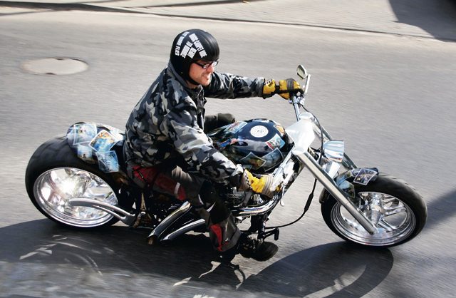 Nawet skromny ruch rollgazu przypomina smagnięcie do galopu stada dzikich koni. Motocykl sprawia wrażenie, jakby tylko na to czekał. Wyrywa do przodu z dziką furią. Ale potem zaczyna żyć własnym życiem. Nie jedzie, ale szarżuje. Nie skręca, ale ponosi, nie zwalnia, ale dzięki wyżyłowanej kompresji i świetnym hamulcom staje w miejscu niemal dęba. Wszystko, co robisz z tym motocyklem, to balans na krawędzi. Gdy się wolno toczysz, masa maszyny i moment obrotowy długoskokowego silnika czynią z niego sprzęt nieprzewidywalny, wymagający koncentracji, wywierający presję. Nieustannie chwieje się równowaga motocyklisty. Niewielki kąt zawracania zniechęca do parkingowo – manewrowego lansu. Jeszcze trudniej jest podczas jazdy. Swoją długość i wysokość motocykl zawdzięcza geometrii ramy niespotykanej w tradycyjnych jednośladach. Dlatego własności jezdne dragstera porywają przed siebie, ale najlepiej tylko w prostym kierunku, bez dziur w drodze.