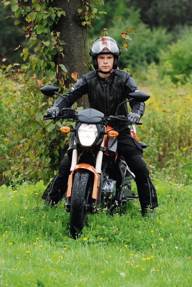 Spalanie mile mnie zaskoczyło. Przy wspomnianym stylu jazdy udało się osiągnąć 3,3 l/100 km. Przeszkodą w dynamicznej jeździe okazała się mało precyzyjna, pięciobiegowa skrzynia biegów. Trzeba się z nią dogadać i to bardzo dokładnie. Biegi uda się zmienić bezszelestnie i skutecznie, jednak wymaga to wyczucia. Konieczna okazała się regulacja położenia dźwigni, seryjnie była ustawiona zbyt wysoko. Bardzo skuteczne są hamulce. Można powiedzieć, że aż zbyt skuteczne! Przewody w stalowym oplocie, dwie pokaźne tarcze z przodu oraz jedna z tyłu sprawiły, że siła hamowania czasami jest wręcz za duża dla Zippa. W zupełności wystarczyłaby jedna tarcza. Teraz delikatne dotknięcie klamki skutkuje mocnym hamowaniem, co w rękach początkujących może być niebezpieczne i po prostu zakończyć się glebą. Na mokrym asfalcie trzeba mieć jeszcze odrobinę odwagi, ale tutaj winne są głównie marnej jakości chińskie opony. Na mokrej nawierzchni tracą właściwość zwaną przyczepnością, a w słoneczne dni oferują tylko wymagane minimum. Szkoda, bo dobre gumy polepszyłyby znacząco wrażenia z jazdy.