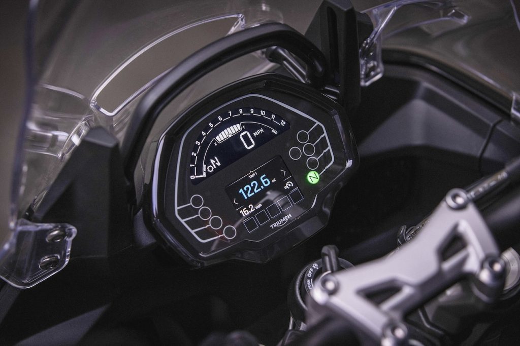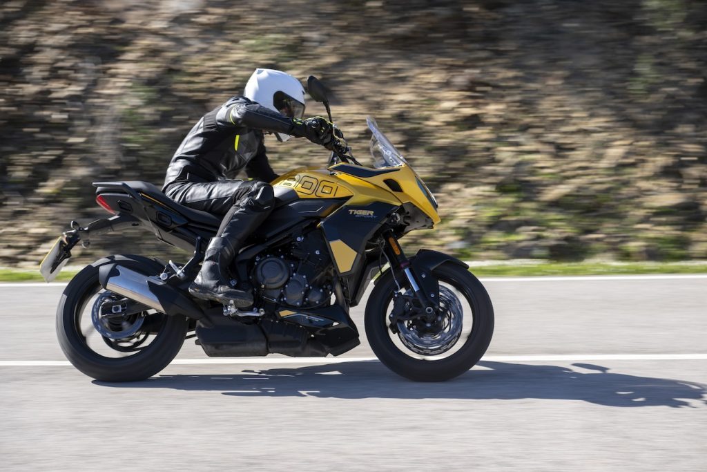 Triumph Tiger Sport 800 jest wyposażony w 6-osiowy moduł IMU, z czym wiąże się bardziej zaawansowana kontrola trakcji, czy ABS działający również w zakrętach. Są też tryby jazdy zmieniające charakter motocykla za jednym dotknięciem przycisku na kierownicy.