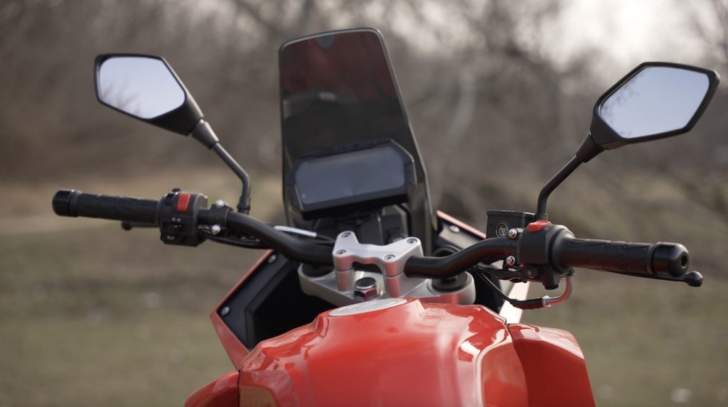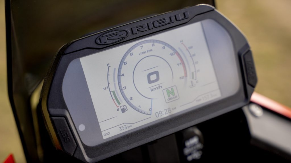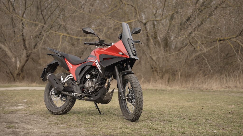 Pierwsze wrażenie? Robi robotę! Rieju wygląda jak rasowy adventure, który z miejsca chce rzucić się w teren. Widać inspirację stylem KTM i „Dakarówek” – agresywny przód, duży bak i wąska szyba, w połączeniu z szeroką kierownicą dodają charakteru i na pewno przyciągną wzrok, zwłaszcza jak się maszyna trochę ubłoci i pokaże w swoim naturalnym środowisku.