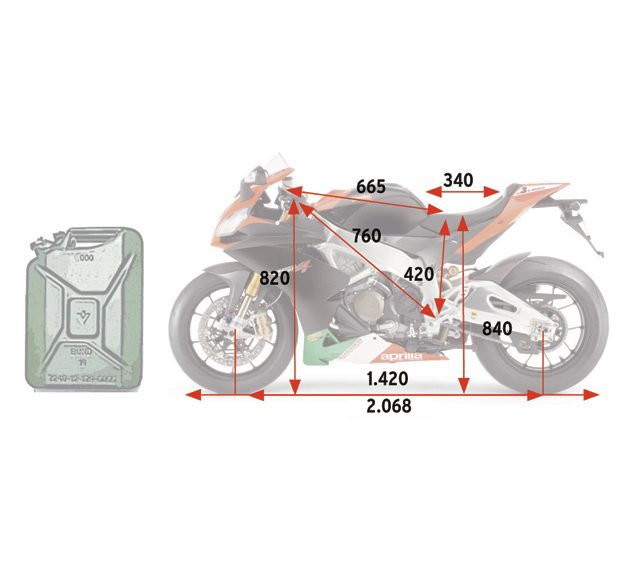Wysokość siedzenia: 845 mmRozstaw osi: 1420 mmMinimalny prześwit: 130 mmKąt pochylenia główki ramy: 24,5°Masa pojazdu w stanie suchym: 179 kgZbiornik paliwa: 17 l