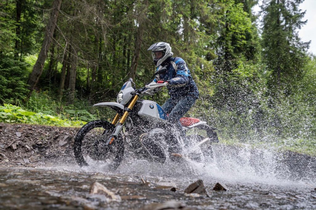 Parę zakrętów po asfalcie i lecimy już off’em – i to nie byle jakim. Strome zjazd, głębokie koleiny, kamienie i kałuże, raz szybciej po szutrze, raz zdecydowanie wolniej, bo robi się technicznie. Dojechaliśmy nad przeprawę przez potok, robimy kilka prób we wszystkie możliwe strony. Mam poczucie, że motocykl jest twardy i nie prowadzi się precyzyjnie na trudniejszych kamienistych podjazdach, zastanawiam się, czy nie upuścić trochę ciśnienia z opon, ale po kolejnym odcinku decyduję się na zmianę ustawień regulowanego zawieszenia, zarówno przedniego, jak i tylnego. Różnica jest odczuwalna i motocykl zmienia swoje oblicze. Przelatuję po kolejnych kamieniach już bez większej obawy, że stracę panowanie nad motocyklem. Zaliczamy kolejne brody z większymi kamieniami, potwierdza się fakt, że bardziej „miękkie” zawieszenie jest zdecydowanie lepszym rozwiązaniem na trudniejsze, kamieniste odcinki. Zastanawiam się, czy będę tego żałował na przelotach po asfalcie, ale zmiana ustawienia zawieszenia po wyjęciu małego śrubokręta trwa dosłownie 10 sekund. Ostatecznie nawet na terenowym „setupie” motocykl na asfalcie prowadził się pewnie i precyzyjnie. Dopiero na ostatnim odcinku górskich asfaltowych serpentyn przywróciłem pierwotne ustawienia. Zakładam, że można znaleźć kompromis w tych ustawieniach i nie klikać często zawieszenia. Dla ułatwienia BMW w instrukcji obsługi zamieściło tabelę sugerowanych ustawień w zależności od warunków jazdy i masy kierowcy.
