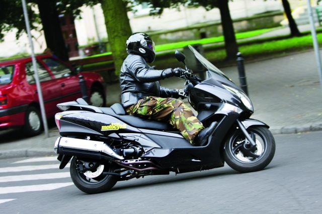 Biorąc pod uwagę łatwość prowadzenia tego dużego rollera, można stwierdzić, że początkujący skuterzysta z małym doświadczeniem powinien dać sobie z nim radę. Z bagażem i pasażerem skuter nie prowadzi się już tak pewnie, szczególnie przy pokonywaniu kolein, czy innych wzdłużnych nierówności (np. powstałych po frezowaniu nawierzchni).
