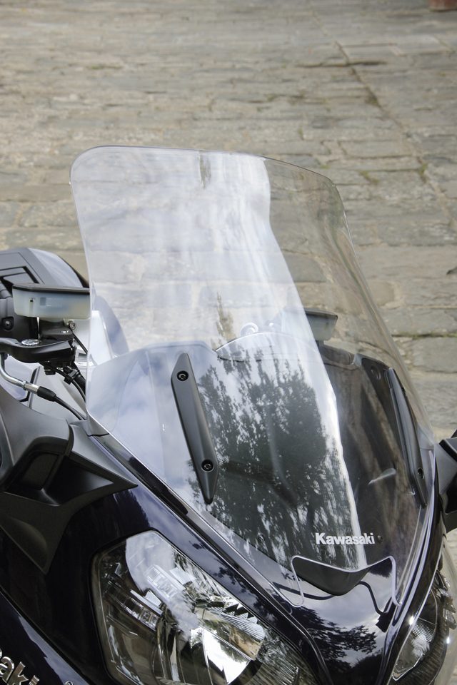 Przekonstruowana owiewka powoduje także, że na Kawie GTR zdecydowanie mniej wieje nawet przy większych prędkościach, a kierowca czuje się pod tym względem rzeczywiście komfortowo. Sytuacja taka nie jest jedynie wynikiem prac nad samą owiewką, ale zmieniono także przednią szybę. Wyższa, sztywniejsza i lepiej wyprofilowana była do tej pory jedynie dostępna jako wyposażenie akcesoryjne, a teraz przeszła do klasy standard.