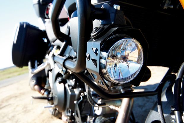 Według starego porzekadła, nie ma brzydkich kobiet, tylko wina czasem brak. Podobnie jest z motocyklami. Tym razem żadne wino nie było potrzebne. Suzuki V-Strom 1000 w rzeczywistości wygląda znacznie lepiej niż na zdjęciach. Dodatkowo ozdobiony akcesoryjnym zestawem kufrów, rurową osłoną silnika i światłami przeciwmgielnymi w technologii LED – robi dobre pierwsze wrażenie.