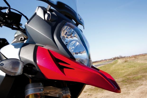 Wiele radości dostarczy kierowcy jazda po zakrętach, bowiem w takich warunkach duży Suzuki V-Strom czuje się jak ryba w wodzie. W pełnym złożeniu kierowca znakomicie czuje motocykl i ma możliwość precyzyjnej kontroli toru jazdy. Suzuki zachowuje się stabilnie i przewidywalnie. Przy małych prędkościach, choćby na ciasnym parkingu, V-Strom manewruje niczym dziecięcy rowerek. Gdy tylko ruszysz z miejsca, natychmiast zapominasz o 230 kg masy i dużych gabarytach. Odpowiednie rozłożenie ciężaru pozwoliło na stworzenie pojazdu nadzwyczaj poręcznego i przyjaznego. Można by rzec ? motocykl orkiestra.