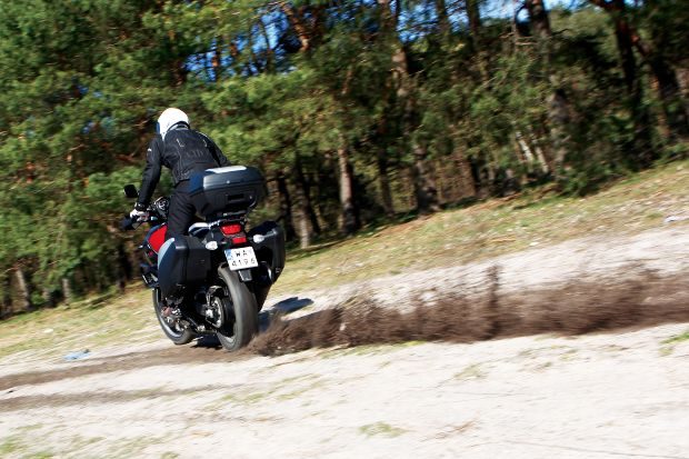 Wbrew temu, co niektórzy mogą sobie wyobrażać, najwięcej frajdy z jazdy tym motocyklem dostarcza nie zabawa w terenie, ale na zakrętach. Off-road cięższy niż leśne szutry lub polne drogi całkowicie przerasta możliwości Suzuki V-Stroma 1000. Ani opony, ani zawieszenie, ani cała konstrukcja tego pojazdu nie zostały stworzone z myślą o skokach, szaleństwach w błocie i piachu czy przeprawach przez rwące potoki.