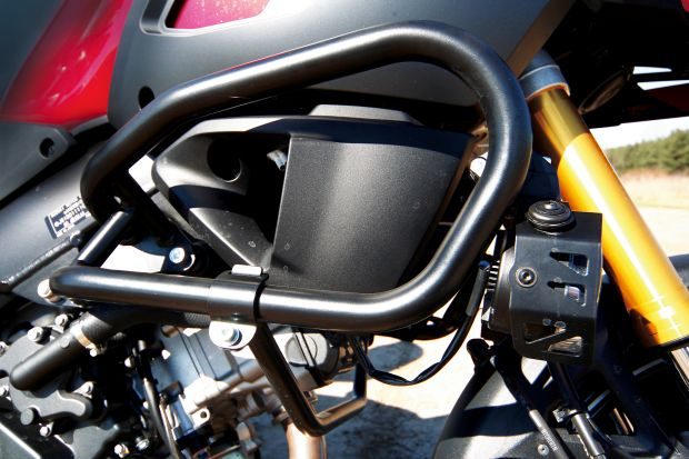 Na układ hamulcowy składa się tarcza o średnicy 260 mm i jednotłoczkowy zacisk z tyłu oraz dwie tarcze 310 mm współpracujące z czterotłoczkowymi zaciskami typu monoblok z przodu. W praktyce oznacza to precyzyjne i skuteczne hamowanie przy każdej prędkości. Przystępując do testu, obawiałem się, że hamulce mogą okazać się piętą achillesową nowego modelu. Nic bardziej mylnego. Stanowią jedną z największych zalet tego motocykla. Na pokładzie znalazł się również precyzyjnie działający ABS, którego niestety nie możemy wyłączyć. Mamy więc wszystkie potrzebne narzędzia, aby wyruszyć w daleką podróż.