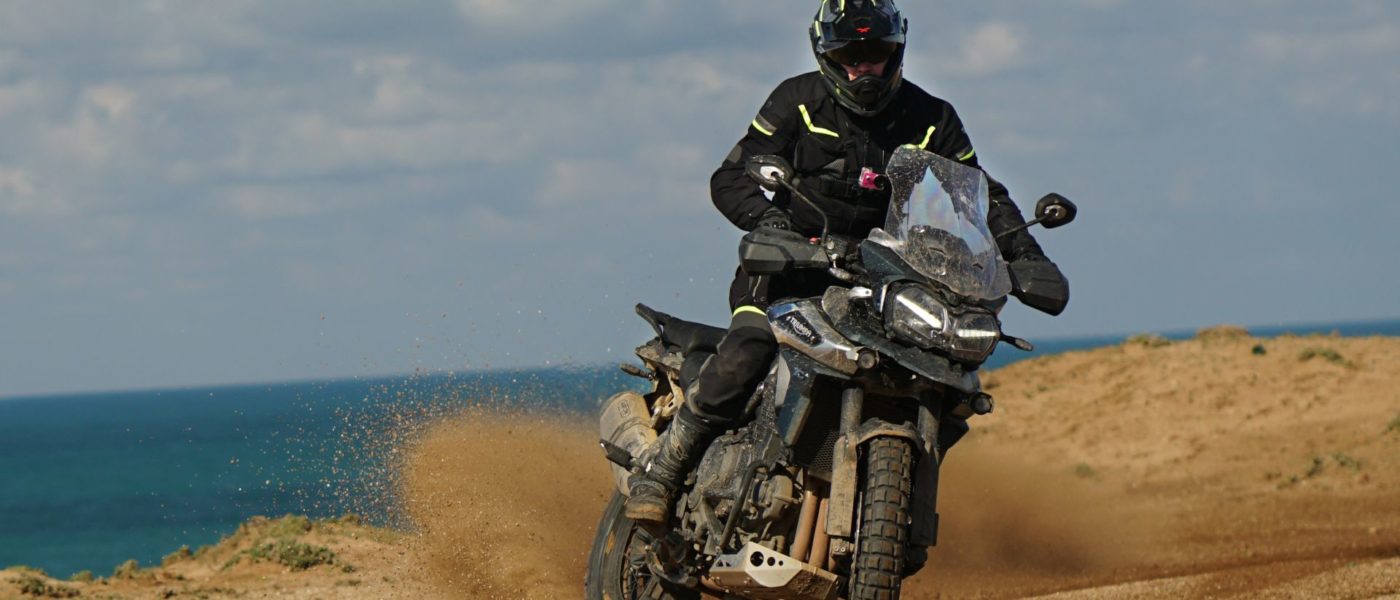 Różnica w wadze nie jest diametralna, chociaż w ciasnych, trudnych zakrętach i nawrotach 800 bije dużego brata na głowę. Na uznanie zasługuje zawieszenie w obu motocyklach. Duży Tiger płynie po piachu niczym amfibia zachowując przy tym… ogromny komfort (!?) Tak, komfort to chyba dobre określenie. Mały Triumph po kilku przeklikach w zawieszeniu i usztywnieniu przodu zrobił się nerwowy. Nerwowy do czasu. Po pierwszej godzinie zacząłem jeździć naprawdę szybko. Wtedy zawias zaczął działać idealnie, nie dobijał a z drugiej strony ręce pompowało mi nieznacznie. Nerwy się skończyły, motocykl robił dokładnie to co chciałem. Jeżeli nie lubicie takich emocji, wystarczy kilka klików w stronę soft i sprzęt będzie gładki i wygodny.