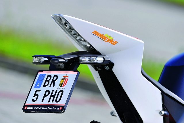 Silnik już odpalony, szybko nabiera temperatury. Teraz jest chwila, aby przypomnieć sobie, co do zaoferowania ma rozbudowane centrum dowodzenia. Wszystkie informacje przekazywane są w elektronicznej formie i nie ma tu ani krzty analogowego zegara. Ciekłokrystaliczny jest nawet obrotomierz, który wyskalowano do 12 000 obr/min. Na kokpicie znalazło się miejsce także dla programowalnej lampki flesza. Na zegarach wyświetlane są informacje m.in. o obrotach silnika, prędkości maksymalnej, czasie (zarówno godzinie, jak i czasie przejazdu), temperaturze, przebiegu całkowitym i dziennym, średniej prędkości. Dla chcących sprawdzić się w rywalizacji z czasem, zamontowano laptimer. Całość jest prosta w obsłudze – dostęp do wszystkiego mamy pod lewym kciukiem.