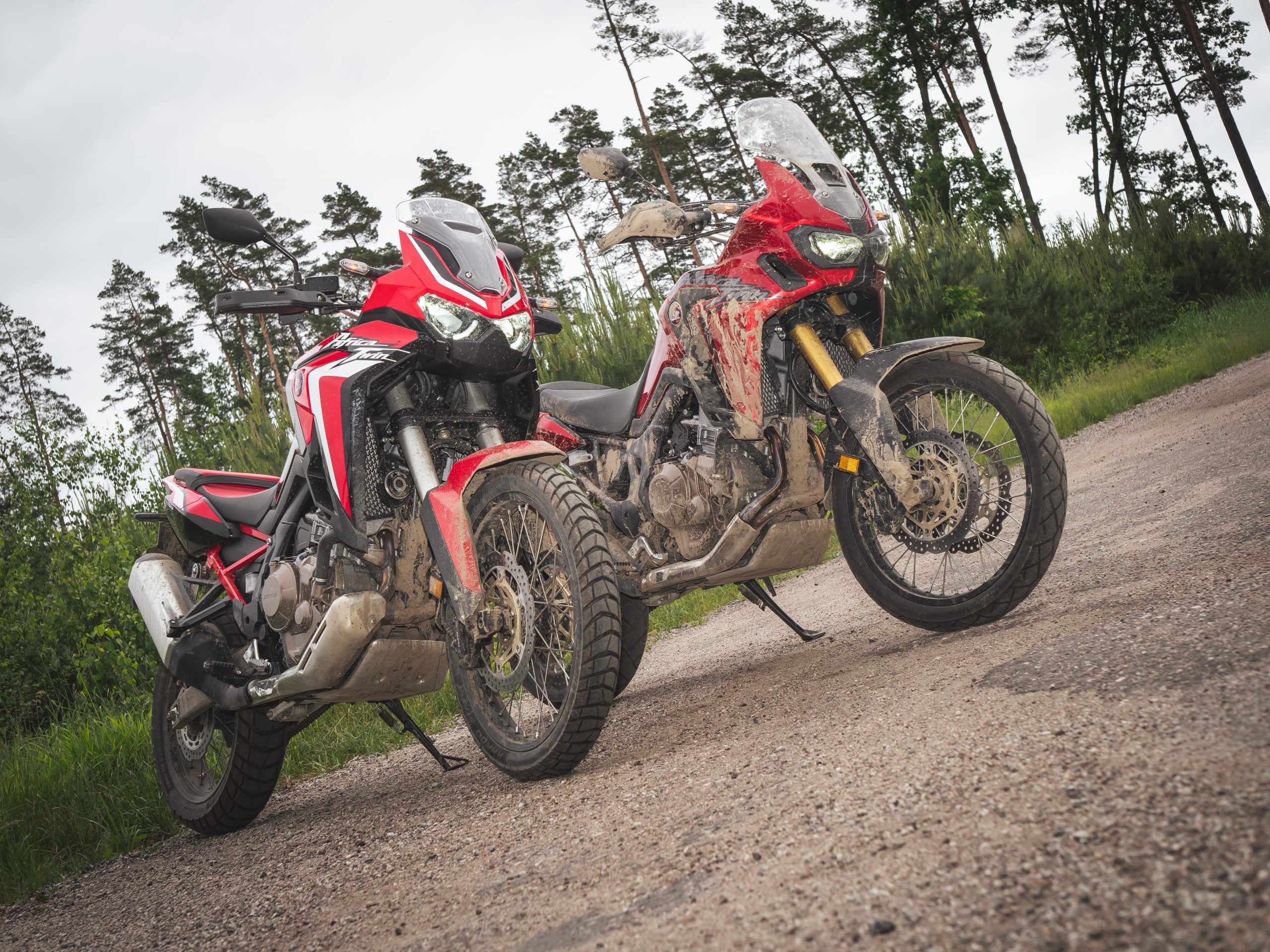 Starszy model wydaje się być przy 1100 motocyklem wręcz analogowym, zwłaszcza że do porównania mieliśmy pierwszą wersję, czyli z linką gazu, a nie potencjometrem, oraz bez trybów jazdy, kontroli hamowania silnikiem itp. Wyłączenie wspomagaczy trwało więc pięć sekund i odbyło się poprzez przytrzymanie dwóch guzików. Choć pod względem elektroniki dzieli te motocykle przepaść, to po odpaleniu słychać, że są po jednych inżynierach. Z tłumików obu motocykli wydobywa się soczysty, gardłowy ryk, którego nie da się nie kochać. Co ciekawe, naszym zdaniem nowa Afryka brzmi odrobinę lepiej niż stara, a przecież spełnia bardziej rygorystyczne normy Euro 5 i ma bardziej rozbudowane katalizatory.