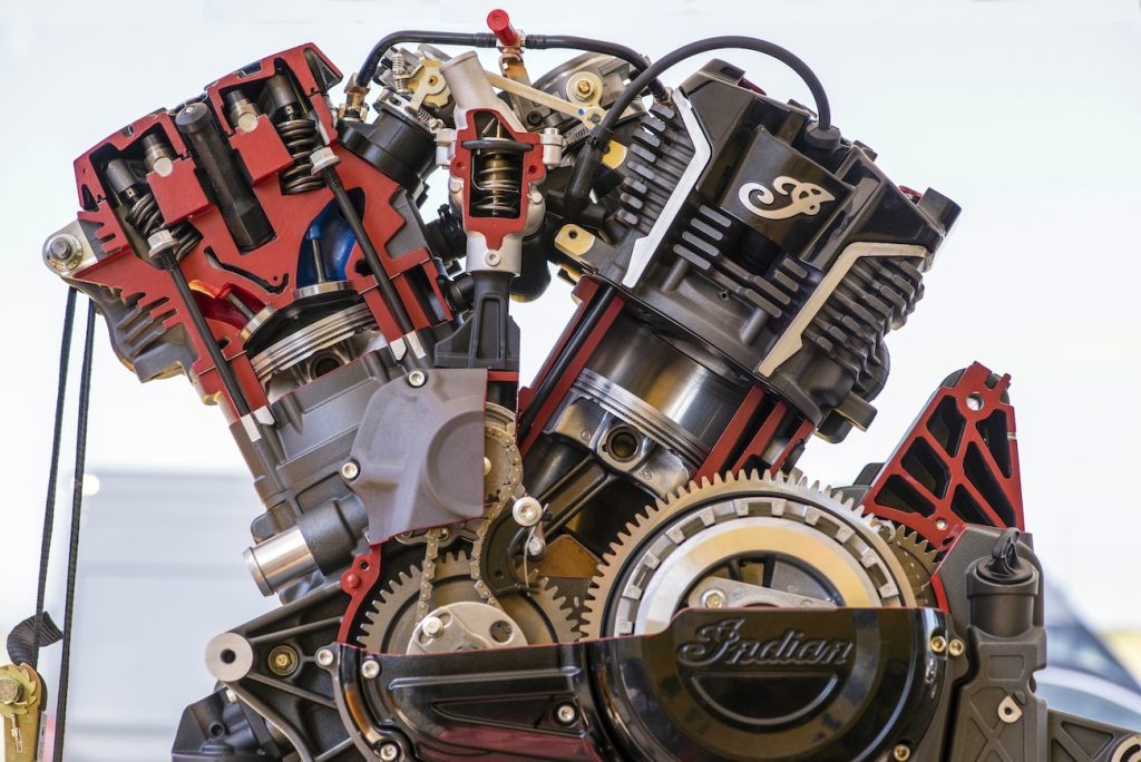 Rozrząd SOHC, napęd skrzyni kołami zębatymi, chłodzenie cieczą – to nie jest konwencjonalna, amerykańska V2. Co ciekawe, ten silnik dosłownie ma wyścigowe korzenie – dokładniej w serii King of Baggers.