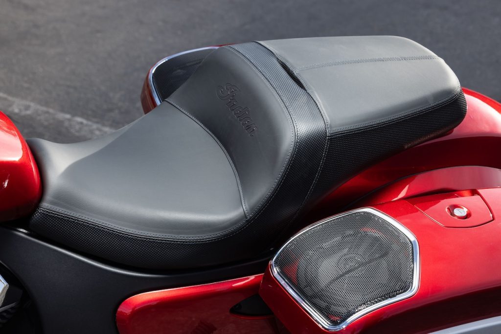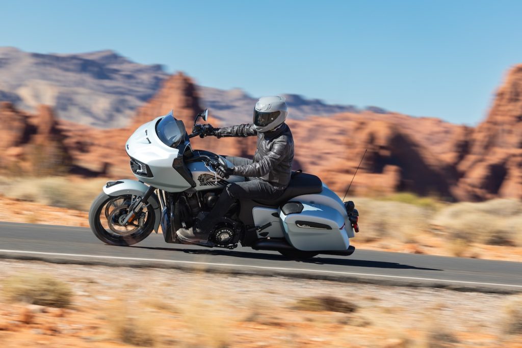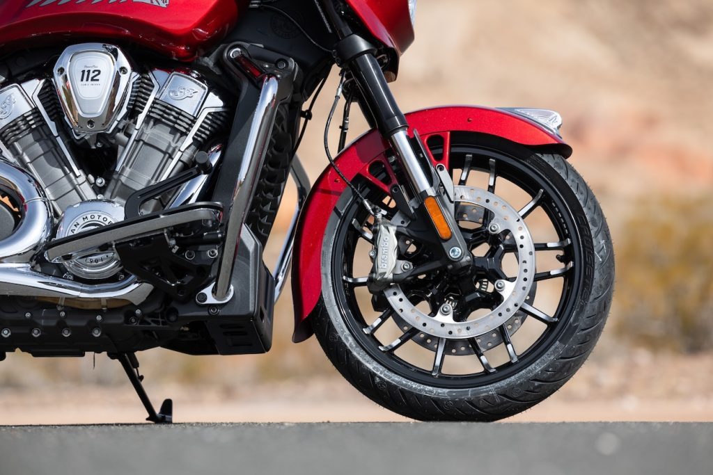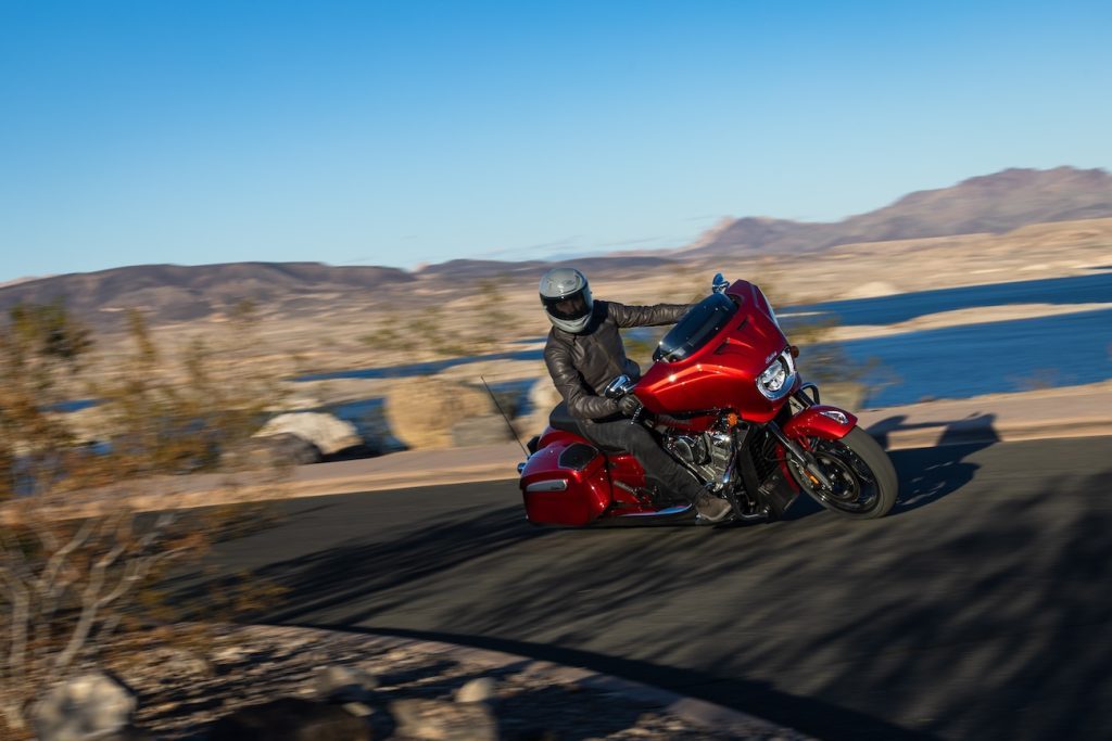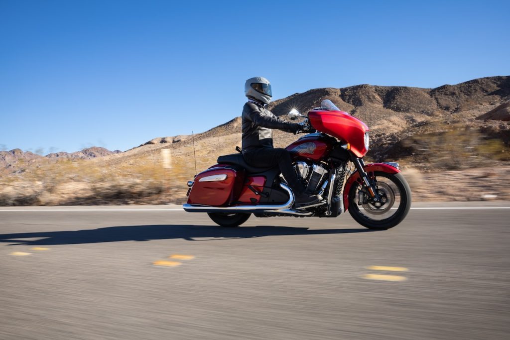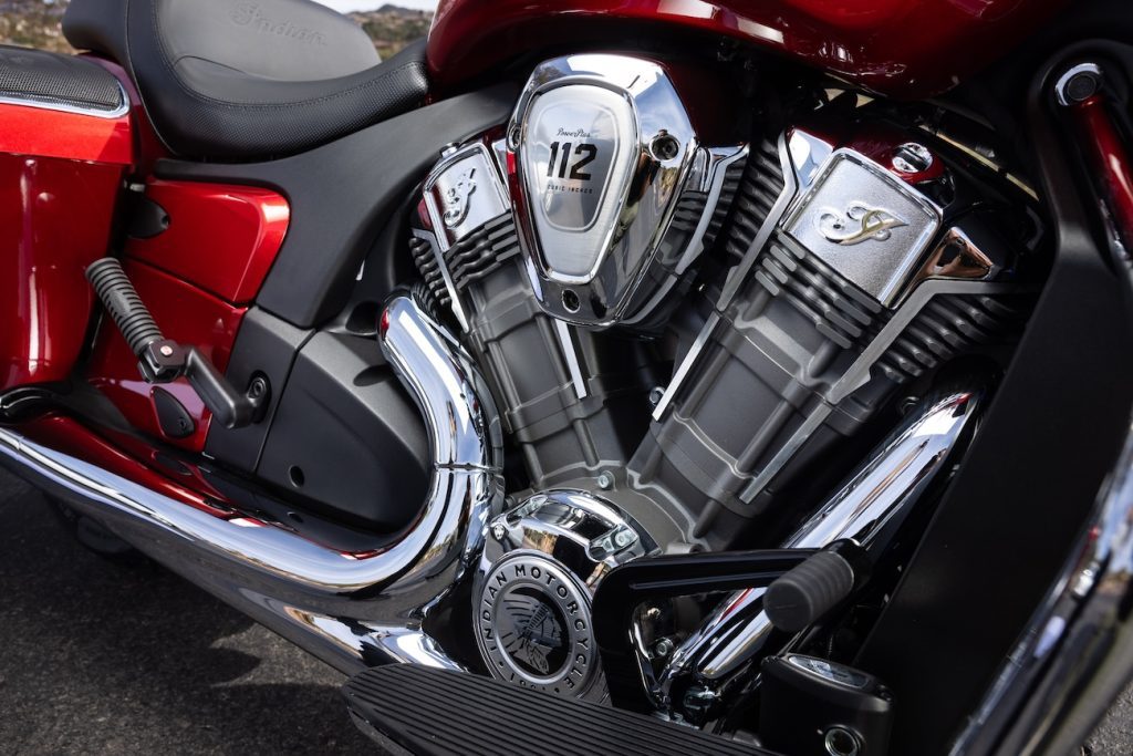 Uwielbiam amerykańskie podejście do stylu prezentowania nowych motocykli. Zwróćcie uwagę, że europejskie i japońskie marki, przedstawiają pełną listę zmian swoich nowości, z wyszczególnieniem nowych uszczelek czy lżejszej o 2 gramy śruby korbowodu. Amerykanie robią to zgoła inaczej – „Słuchajcie! zrobiliśmy nowy motocykl będący hołdem dla amerykańskiego ducha motoryzacji. Zwiększyliśmy pojemność o 4 cale sześcienne i daliśmy nowe malowanie inspirowane muscle carami z lat 70…”. I podczas prezentacji Indianów Chieftain i Challenger z silnikami PowerPlus 112 zapowiedź była właśnie w tym stylu. Prezentację, w której uczestniczyłem, również można zawrzeć w podobnej objętości. Indian zwiększył pojemność do 112 cali (1834 ccm) względem poprzednich 108 cali (1768), co dało wzrost mocy do 126 KM (+ 5 KM) i momentu do tłustych 181,4 Nm (+ 3,4 Nm). W zależności od narracji, PowerPlus jest określany pojemnością nowego silnika lub po prostu pakietem 112. Co więcej zmieniono w jednostce napędowej? Nie mam pojęcia, bo otrzymywałem odpowiedź po amerykańsku – „dużo, jest mocniejszy i większy. A widziałeś jakie kozackie customy można na nich zrobić?”. Jak się nad tym zastanowić, czy naprawdę niezbędna jest mi wiedza, że np. wałek rozrządu ma nową powłokę (chyba, że jeżdżę KTM) lub pompa olejowa ma nowy napęd? Pozostawiam do rozważenia… Do rozważenia dla projektantów Indiana było też podejście do elektroniki. Jak wspomnieli, jeszcze raptem 5 lat temu, nawet kontrola trakcji była dla klientów lekko niestrawna. Natomiast przy opracowywaniu 112-tek, według badań konsumenckich okazało się, że potencjalni klienci chcą tej elektroniki, by w razie czego czuwała w tle. Więc przy okazji nowych modeli, pojawiło się sporo elektroniki, która dla reszty świata jest już niemal standardem. Mowa o sześcioosiowym IMU, który obsługuje kontrolę trakcji, Cornering ABS czy kombinowanym systemie hamulcowym. Oprócz tego jest jeszcze monitorowanie martwego pola, ostrzeganie przed pojazdem niebezpiecznie zbliżającym się z tyłu, czy układ przytrzymywania hamulca. To ostatnie jest naprawdę spoko, bo jak wdusisz dźwignię hamulca na postoju tak „po męsku”, to hamulec jest zblokowany na 4 minuty i ułatwia np. ruszenie pod górkę i inne tego typu manewry. Co ważne – poza kombinowanym systemem hamulcowym, wszystko można wyłączyć na stałe. Z elektronicznych gadżetów nowy jest też system infotainment – ekran z Apple CarPlay i nawigacją, nowe głośniki i co najważniejsze – całkowicie nowy kokpit, który zaliczył mocny progres jakościowy, co moim zdaniem wcześniej mocno kulało w Baggerach Indiana. Teraz jest naprawdę świetnie, jak zresztą w każdym zakamarku tych motocykli. Trzeba przyznać że lifting, choć na pierwszy rzut oka delikatny, mocno poprawił jakość wykończenia każdego zewnętrznego elementu tych motocykli. Żeby zamknąć już etap „obwąchiwania” się z motocyklem, wspomnę tylko, że rama jest aluminiowa, grzbietowa co jest ewenementem w motocyklach z USA i jest niezmieniona względem poprzednich wersji. Zawieszenie przednie dostarcza Kayaba, tylne Fox, a hamulce Brembo – te elementy też pozostały nietknięte. W sumie, z punktu widzenia parametrów jazdy zmieniły się tylko trzy rzeczy – pojemność, moc i moment obrotowy.