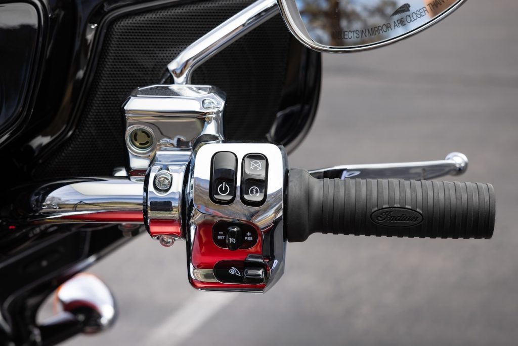 Za ironię losu uznaję fakt, że jako mocnemu hejterowi pierwszego Challengera, na pierwszy rzut przydzielono mi właśnie ten model w nowej odsłonie. Ot, taka nieistotna ciekawostka. Istotniejsze jest natomiast to, że już od pierwszych chwil, wiesz, że Indian sprawnie połączył obrazoburcze chłodzenie cieczą, z klimatem i brzmieniem amerykańskiej V2. Starter tradycyjnie, z wysiłkiem obraca wałem, motocykl dostaje drgawek i pierwsza salwa z wydechów niesie się po parkingu. Ten mały rytuał zawsze sprawia, że nogi mi na moment miękną. Wydawać się to może niefajne, że mam manewrować po parkingu motocyklem ważącym 388 kg, ale na swoją korzyść mam dwa fakty. Pierwsze to nisko umieszczony silnik. Chłodzenie cieczą i wałek wyrównoważający skutecznie redukują wibracje, których nie wolno się w takim motocyklu całkowicie pozbyć. Więc, żeby był Indian syty i wibracje stałe, pozbyto się tłumików drgań co z automatu obniżyło punkt mocowania silnika. W efekcie podniesienie motocykla z bocznej stopki i wolne manewry są względnie łatwe jak na tak ogromny motocykl. Chcąc naprawdę ciasno zakręcić, musiałem się jednak nieco wychylić, żeby… dosięgnąć kierownicy. Nie jestem knypkiem (183 cm), ale też nie dryblasem, więc w pełnym skręcie musiałem się nieco przesunąć, bym mógł utrzymać rękę na kierownicy. Duże osoby będą zadowolone, bo miejsca jest tu od groma. Na szczęście szybko sobie zdałem sprawę, że w sumie nie muszę tego robić często, bo przecież jestem w miejscu, w którym pas ruchu jest szerszy przynajmniej o metr niż u nas. Promień skrętu nie ma więc znaczenia. To co zatem ma znaczenie?
