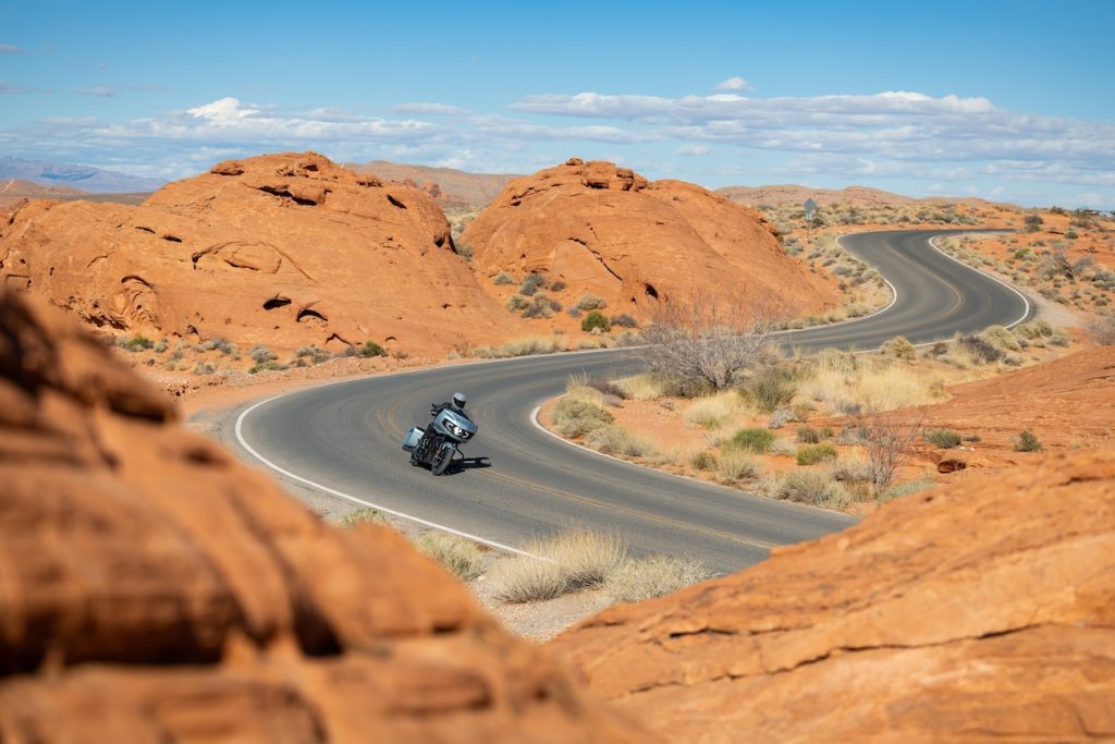 Soczysty, zawadiacki i kojący bulgot amerykańskiej V2, dominuje nad szumem wiatru. Wiatr zresztą nie ma do mnie dobrego dojścia, na drodze stają mu potężne owiewki baggerów Indiana. A ja za tymi owiewkami obserwuję niesamowite krajobrazy Doliny Ognia, w stanie Nevada. Od czasu do czasu, lekko oślepiony słońcem odbijającym się od chromowanej kierownicy, coraz bardziej uśmiecham się pod kaskiem i w końcu dopada mnie myśl: „a więc o to wam Amerykańce chodziło”. Po to robicie tak wielkie motocykle. Dlatego z tych gargantuicznych silników wyciągacie tak mizerną moc. Dlatego pokazujecie środkowy palec funkcjonalności i wszech wspaniałości, za jaką gonią wszystkie marki reszty świata.