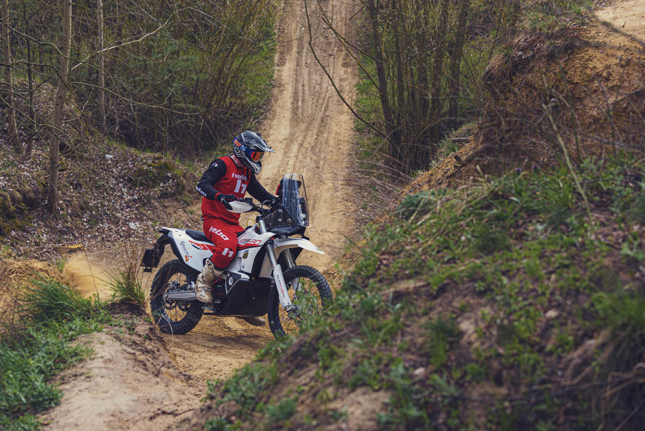 Dobrze wiedzieć, że austro-szczecińska maszyna świetnie jeździ po asfalcie, ale przecież ważniejsze jest to, jak sprawuje się w terenie. Na szczęście droga, po której jechałem, prowadziła prosto na poligon. Doskonale! W dodatku świeżo po zjechaniu z asfaltu przywitała mnie długa, szutrowa prosta z sekcją wysokich muld czy, jak kto woli, whoopsów, zakończona szybkim zakrętem z bandą – ideolo! Z początku jazda po muldach była nieśmiała, ale Huska nie wymaga dużo czasu, by ją wyczuć, więc można było odkręcać gaz coraz śmielej i dziwić się coraz bardziej.