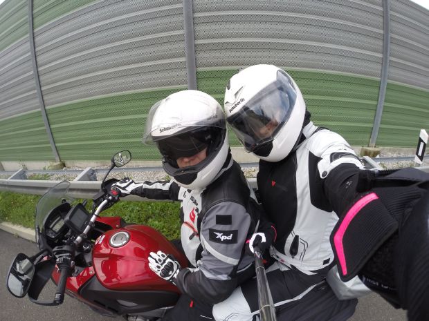 Przed wyjazdem byłem przekonany, że na trasie pomogą nam turystyczne kaski Schuberth. Komfort i możliwość otwarcia szczęki to ważne, ale najważniejszy był system Bluetooth, który pozwala na rozmowy, słuchanie muzyki albo radia. Gdy „debata” będzie się toczyć, a muzyczka grać, to jakoś nam zleci. System działa, fakt, ale pod warunkiem, że podróżujecie z prędkością do 100 km/h. Ja wybrałem autostrady i próby rozmowy kończyły się tym, że ze zdwojoną siłą słyszałem szum wiatru: tego, który owiewał mój kask i tego, który wpadał do mikrofonu pasażerki. Po wielu próbach skomunikowania się, na których zdarliśmy gardła, postanowiliśmy to olać. Monika sparowała telefon z systemem i puściła sobie muzykę, a ja jechałem. Jechałem, a później znowu jechałem. Jedyną rozrywką było sprawdzanie odległości na zasadzie: „daleko jeszcze?”.