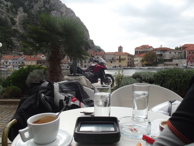 Jakieś 300 kilometrów od celu ból pośladków i karku był nie do zniesienia. Po drodze to mokliśmy, to wysychaliśmy tyle razy, że nie policzę, ale o dziwo nie było to aż tak uciążliwe. Okazuje się, że dobre ciuchy naprawdę się sprawdzają. Ostatnie dziesiątki kilometrów ciągnęły się w nieskończoność, ale opłacało się! Gdy przekroczyliśmy pasmo przybrzeżnych, nadadriatyckich wzgórz, przed nami roztoczyły się tak fantastyczne widoki, że wreszcie poczułem wyższość motocykla nad autem. Mieliśmy nieograniczone pole widzenia! Na motocyklu po prostu nic nie oddziela Cię od natury i jej piękna. Przestają boleć gnaty, ogarnia Cię zachwyt. W takim momencie zaczynasz rozumieć, o co w tej turystyce chodzi.