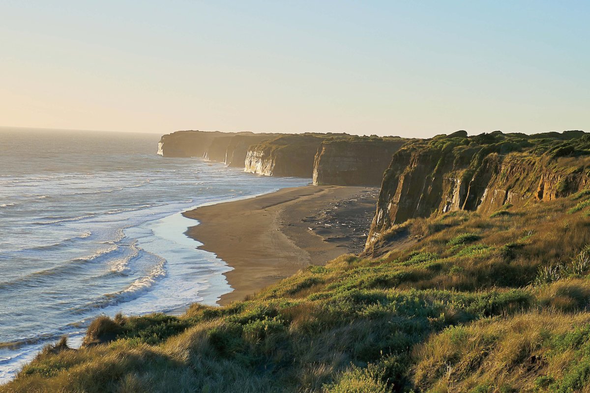 Fot. powyżej: Klify zachodniego wybrzeża południowej części Wyspy Północnej.