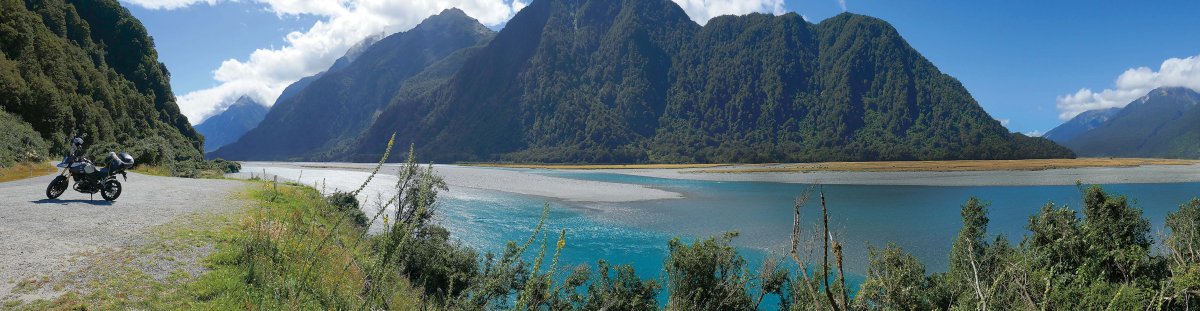 Pojechaliśmy na południe wyspy wzdłuż zachodniego wybrzeża. Przy wjeździe w Alpy Południowe trzeba wzmóc czujność. Stacje benzynowe są tam rzadsze i dwukrotnie niechcący sprawdziliśmy zasięg naszych „osiołków”. Jedną stację przegapiliśmy, w kolejnym punkcie samoobsługowym była awaria systemu i zaliczyliśmy rajd „o kropelce”. Szczęśliwie DL-e miały niewielki apetyt. Średnie spalanie w „sześćsetpięćdziesiątce” wyniosło 4,3 l/100 km, a w tysiącu było niewiele większe. W północnej części zachodniego wybrzeża mijaliśmy rajskie pejzaże z górskimi jeziorami. Według przewodnika pada tam przez 280 dni w roku. Szczęśliwie trafiliśmy na te nietypowe – bezdeszczowe.