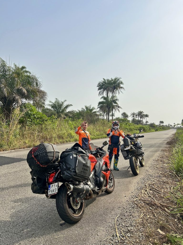 W Wybrzeżu Kości Słoniowej spotkaliśmy się z parą Francuzów (pani polskiego pochodzenia), którzy podróżują na motocyklach po Afryce od 1,5 roku. Bardzo pragnęli nas zobaczyć i nasze nietypowe, jak na taką wyprawę, maszyny. Nazwali nas szalonymi Polakami.