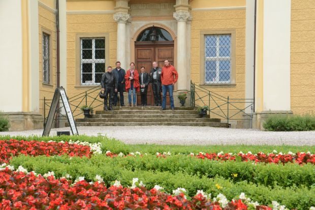 Z Kamiennej Góry krajową piątką przejechaliśmy do miejscowości Marciszów gdzie odbiliśmy w lewo na Janowice Wielkie. Omijając od północy Rudawski Park Krajobrazowy i niezwykle malowniczą Doliną Bobru dojechaliśmy w końcu do Pałacu w Łomnicy. Właścicielka Pani Elizabeth von Kuster, która uratowała pałac z ruiny oprowadziła nas po całym niezwykłym kompleksie. W restauracji zjedliśmy pyszne ciasta z truskawkami popijając kawą i odpoczywając przed kolejnym etapem podróży.