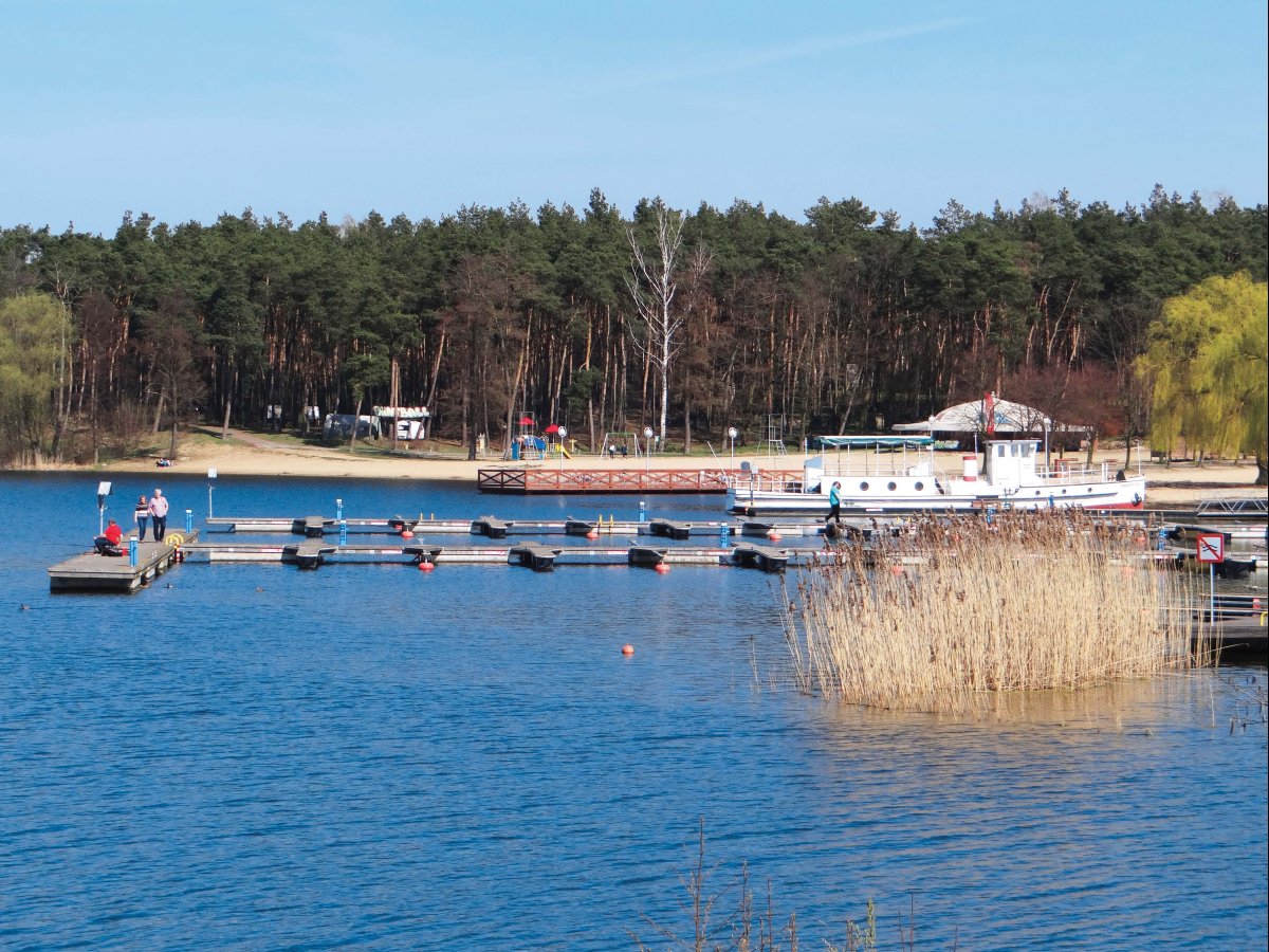 Powyżej: jezioro w Ślesinie. Latem pełno turystów, wiosną – motocyklistów.