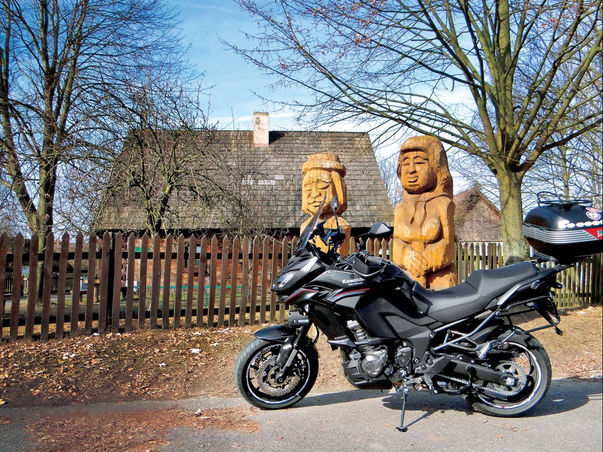 Po chwili i dwóch momentach wpadamy do Gniezna. Nie będę ukrywał, że nie przepadam za miastami. Mam wrażenie, że większość ludzi zajmujących się turystyką motocyklową ma podobnie. Zatem wybaczcie: poprzestanę na zdjęciu przed Katedrą, kawie na stacji i – do przodu. Tym chętniej, że następne 70 kilometrów to wąskie, pozakręcane drogi, wiodące przez pojezierze gnieźnieńskie. Może nie są to Mazury, ale jedzie się bardzo przyjemnie, a krajobraz Wielkopolski – czyli widok po horyzont – ma w sobie coś fajnego, zaryzykowałbym stwierdzenie, że amerykańskiego.
