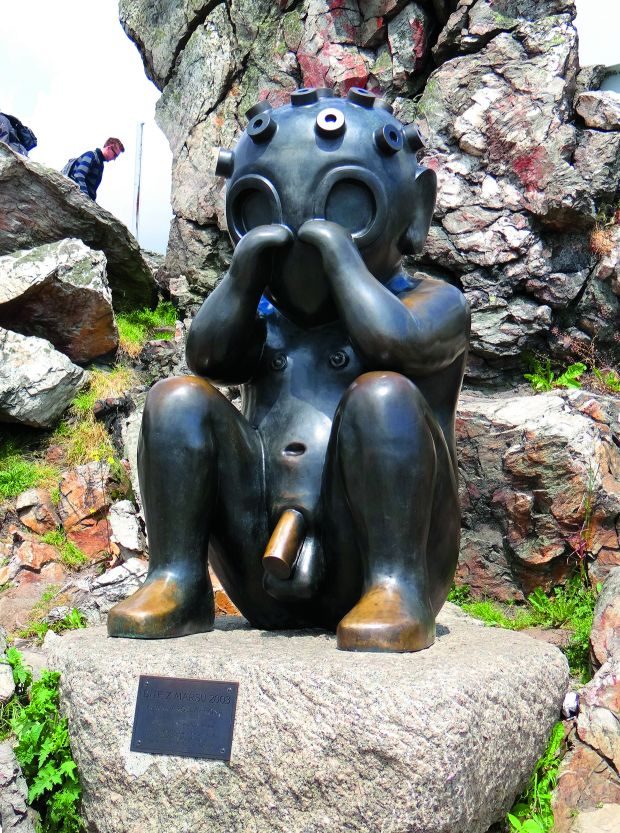 Po przekroczeniu naszej granicy w okolicy Gryfowa Śląskiego, jadąc w kierunku czeskiego Novego Boru, zaliczyliśmy wjazd trzykilometrową serpentyną na szczyt góry Jested. Na samym szczycie, oprócz fantastycznej panoramy, znajduje się wybudowany za komuny hotel w stylu naszego schroniska na Śnieżce oraz pomnik „Dziecko z Marsa”, który jest tak samo absurdalny, jak śmieszny. Ciekawe, czy ktoś wie, „co poeta miał na myśli”, stawiając w tym miejscu to cudo? W każdym razie ochrzciliśmy owo dzieło polską nazwą „Dziecko z dytkiem”.