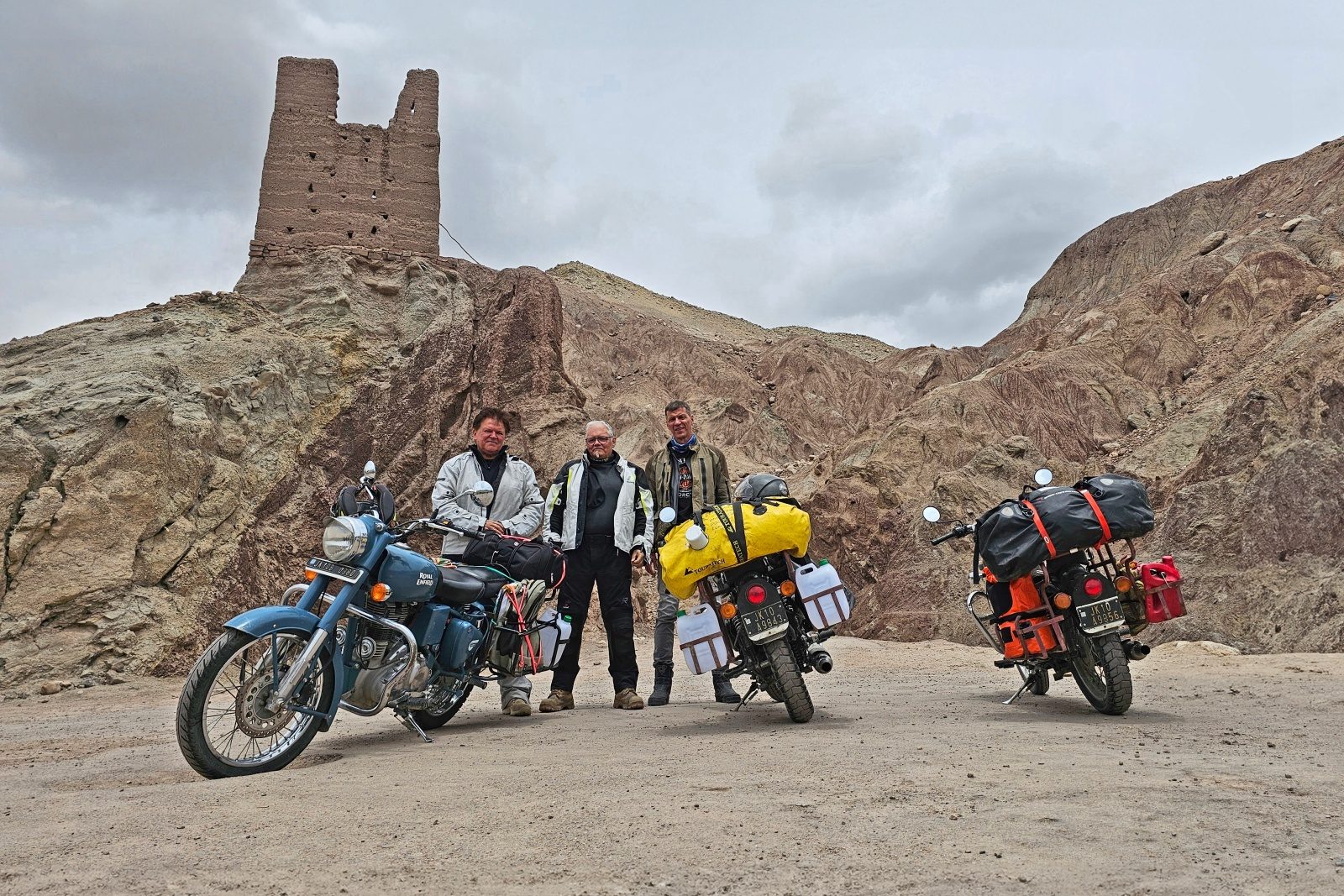 Nasza marszruta ułożona była bardzo rozsądnie — pierwsze dwa dni nieco łatwiejsze i trasa lżejsza. Tak, żeby uczestnicy mogli zapoznać się ze specyfiką Royali Bulletów 500. Niby zwykły motocykl, jakoś tam hamuje, przyspiesza i skręca, ale należy traktować go raczej w kategorii zabytków, a nie adwenczerów. Większość ekipy, poza Erwinem, Palmą i mną, ma raczej słabe doświadczenie z weteranami szos. Ruszamy więc z Leh przez Beema, Hanu Yogma, do Hanu Gongma. Tu na chwilę zatrzymujemy się w niewielkiej kamiennej wiosce, zamieszkałej przez plemię Brokpa, podobno z aryjskimi korzeniami. Następnie przebijamy się przez kolejne wioski — Dha, Garkone, Lalung i zdobywamy pierwszą “poważniejszą” przełęcz — Hambuting (4024 m n.p.m.), po czym spokojnie zjeżdżamy na nocleg do Kargil. Następny dzień jest równie lekki. Ruszamy z Kargil przez Mulbeck (wizytujemy pradawną świątynię wykutą w skale), przez zjawiskowe Lamayuru, przełęcz Fotu La z powrotem do Leh, gdzie kończymy etap rozgrzewkowy. Z opisywanych wcześniej proceduralnych powodów dzielimy się na dwie grupy. Zasadnicza karawana pod opieką Arshdeepa, z samochodami, rusza na Umling La – najwyższą obecnie dostępną przełęcz na świecie. Mniejsza, trzyosobowa grupa pod kierownictwem Witka, wyjeżdża w kierunku Zanskaru. Drogą krajowa NH1 docieramy do ruin monastyru i ruin pałacu królewskiego w Basgo, następnie Alchi. Kilka kilometrów za checkpostem w Kaltshe wbijamy się w boczną, lokalną drogę w kierunku Lamayuru. Andziuś twierdzi, że to trasa nieprzejezdna. Rzeczywiście, w poprzek drogi ułożono kilka kamieni, co w tamtejszych warunkach oznacza zakaz wjazdu. Ale czy musimy znać się na takich nieformalnych oznakowaniach poziomych drogi? Rzeczywiście trasa nie jest najłatwiejsza i, ze względu na zerwany częściowo most (pozostało ok. metra szerokości), jest nieprzejezdna dla samochodów, ale my przecież jedziemy motocyklami. Za to widoki zapierają dech w piersiach i jedzie się spokojnie, bez walki z innymi pojazdami — widać, że od dawna droga nie jest używana. Na kolejny dzień zaplanowaliśmy atak na przełęcz Sir Sir La. Pada deszcz, jest ślisko, a lokalesi zdecydowanie odradzają nam wyjazd i sugerują, aby poczekać kilka godzin, ponieważ to, co tu jest deszczem, nieco wyżej będzie śnieżycą. Ale co tam „frajerzy” mogą wiedzieć o górach? Ruszamy. No i rzeczywiście na wysokości powyżej 4 500 m n.p.m. wieje, pada, jest zimno i ślisko. Zaliczamy pierwsze, niegroźne gleby w błocie, ale przełęcz zostaje zdobyta. Zjeżdżamy do Photoksar ogrzać się herbatką w prowizorycznym namiotowym barze i atakujemy kolejną przełęcz – Singe La. To nasz pierwszy “pięciotysięcznik”.