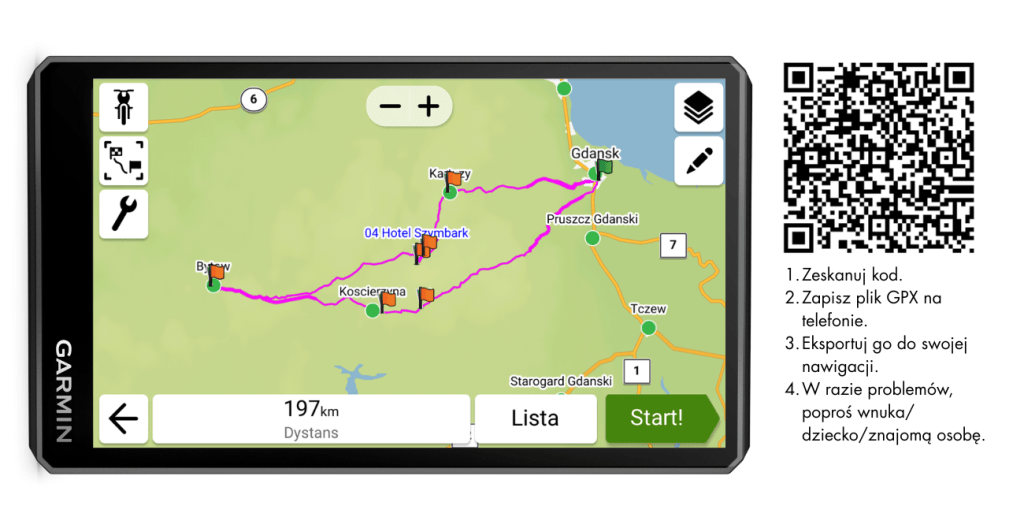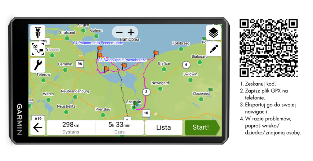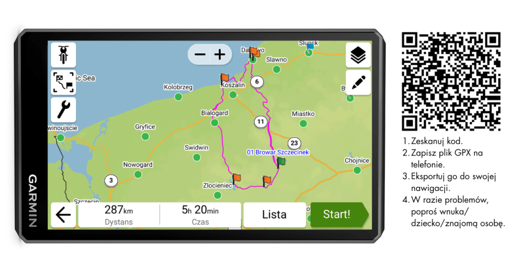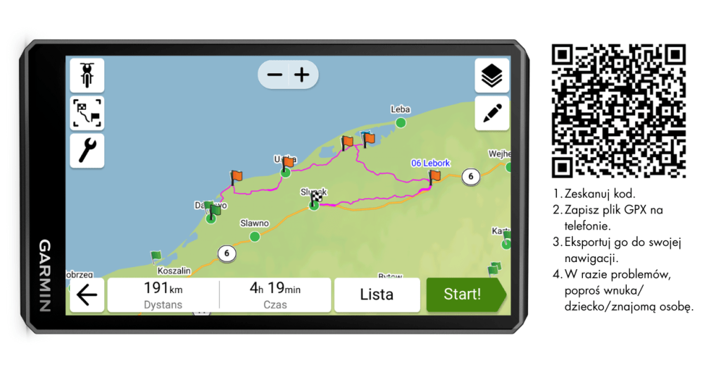 Wybrzeże Środkowe – mapa trasy i kod QR