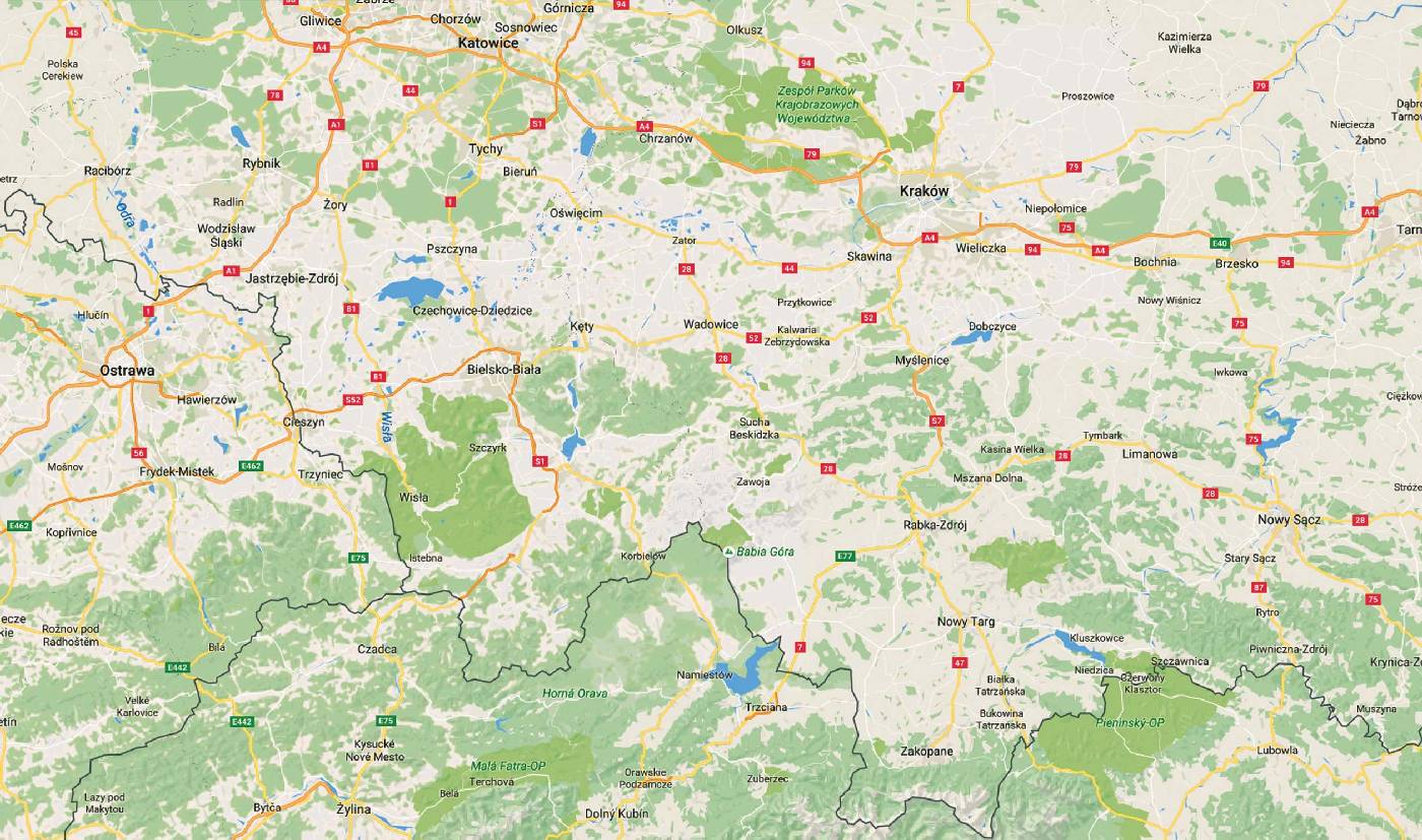 Kierunek – Sucha Beskidzka. Jest tu wspaniały zamek renesansowy i sławna karczma „Rzym”. Pełni podziwu nad architektonicznymi kształtami, wyruszamy w stronę coraz bardziej wypiętrzających się gór, a konkretnie w stronę Zawoi, leżącej pod Babią Górą. Od Stryszawy przebijamy się przez masyw Beskidu Żywieckiego i lądujemy w niekończącej się wsi, jaką jest Zawoja. Jeśli jest dzień targowy, to można tutaj kupić pyszne oscypki. Przed naszymi oczami raz po raz pokazuje się potężny masyw Babiej Góry, nawet w lecie miejscami w żlebach pokryty śniegiem. Kierując się na Jabłonkę, Nowy Targ zaczynamy się z kotliny, w której leży Zawoja, wspinać na zalesioną przełęcz Krowiarki. Świeżość górskiego i leśnego powietrza staje się aż nieznośna dla naszych mieszczańskich powonień.
