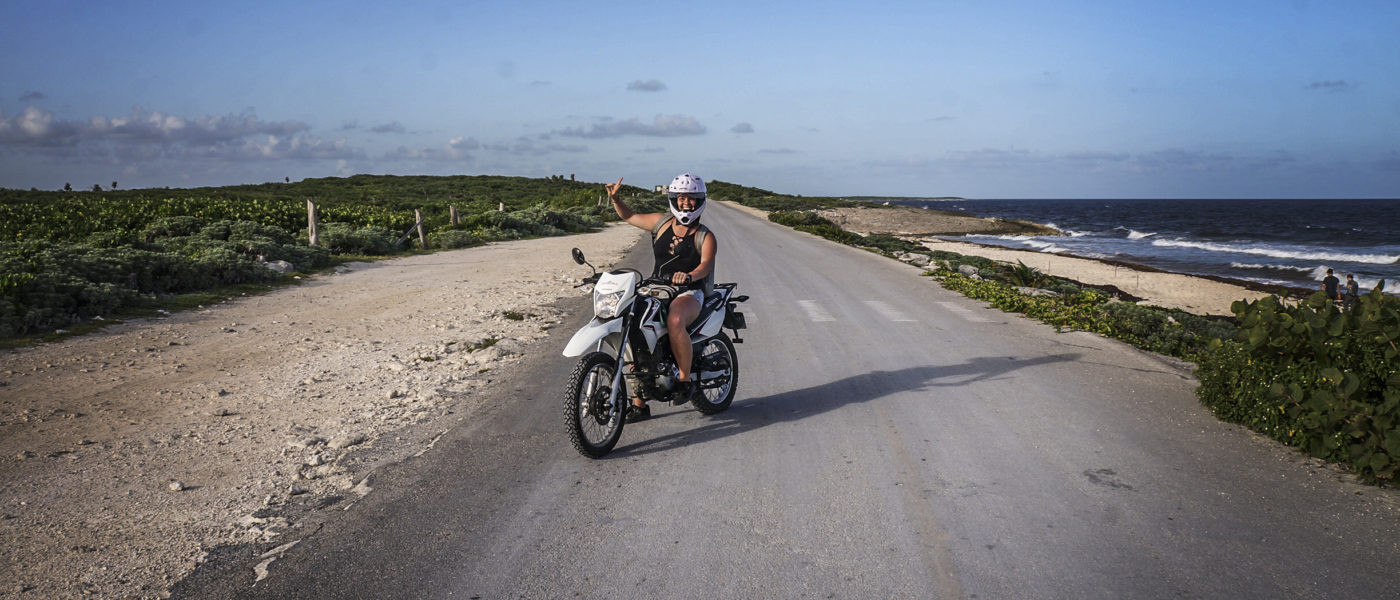 Przemierzanie Cozumel motocyklem to sama przyjemność. Droga jest prosta, a ruch nie tak wzmożony, jak w Playa del Carmen. Można dotrzeć na najdalej wysunięty na południe punkt Meksyku – Punta del Sur. Spotkałam tam krokodyle, flamingi i cudowne, złociste plaże. Są też drogi bez asfaltu, gdzie turysta nie dociera, bo wypożyczalnie nie pozwalają wjeżdżać wypożyczonymi maszynami. I wiecie co? Właśnie tam jest najfajniej!