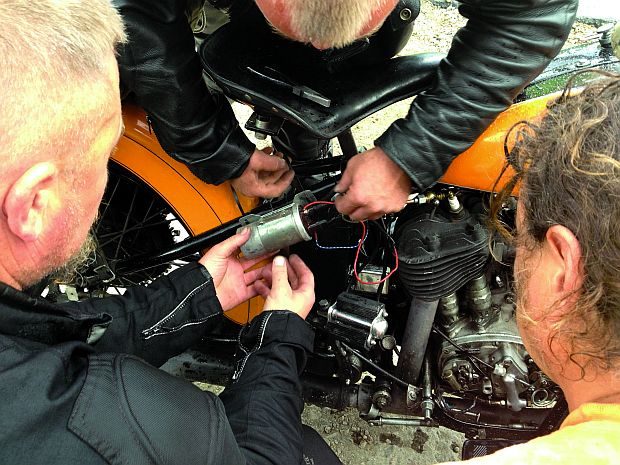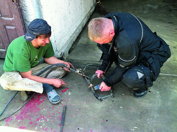 Głównym źródłem tych kłopotów był, niestety, mój Harley VLD z 1934 roku, w którym, poza zmianą cewki, musiałem kilkakrotnie czyścić przewód paliwa (zapychany przez łuszczącą się żywicę zabezpieczającą zbiornik od środka), wymienić spuchnięty pływak w gaźniku i naprawić naruszone mocowanie siedzenia, którego śruby nie wytrzymały pokonywanych wertepów. Aby zrzucić z siebie część winy, dodam, że Yamaha Mariusza też nie wytrzymała i musieliśmy spawać tylny element przykręcany do ramy, mający za zadanie podtrzymać błotnik i bagażnik.