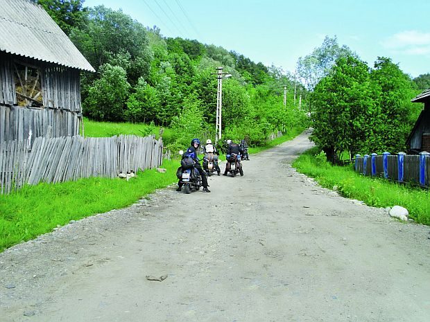 Transalpina okazała się łatwą, malowniczą, górską drogą, której dawne trudności odeszły do historii. Dużo większe problemy spotkały nas, kiedy próbując omijać główne drogi, zapuściliśmy się w zupełnie inną krainę. Niezły dotychczas asfalt ustąpił miejsca bitym duktom prowadzącym do biednych wiosek. Omijanie dziur i jazda na stojąco przez kilkadziesiąt kilometrów zakończyły się dramatycznie stromym podjazdem, który musieliśmy pokonać z pełnym gazem, wyrzucając spod koła luźne kamienie i ryzykując efektowną glebę. Zawahanie się i zatrzymanie motocykla musiałoby się zakończyć sturlaniem się w dół i ponowną próbą podjazdu.