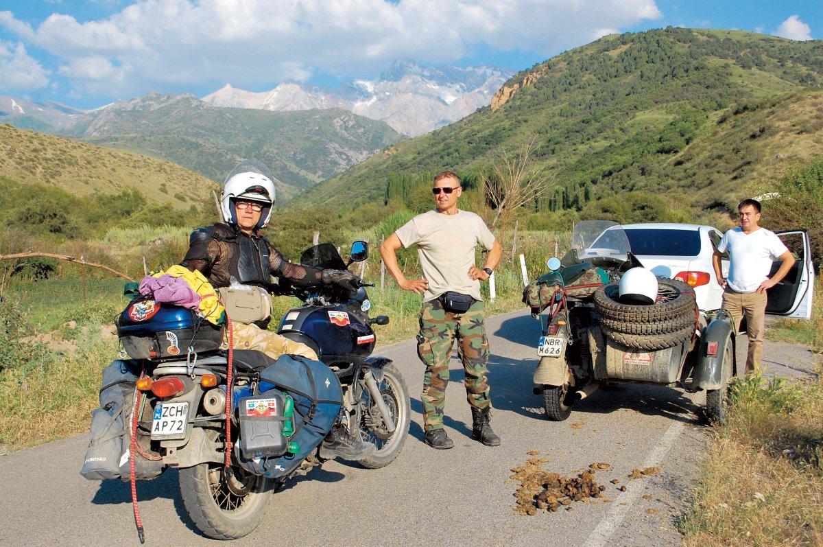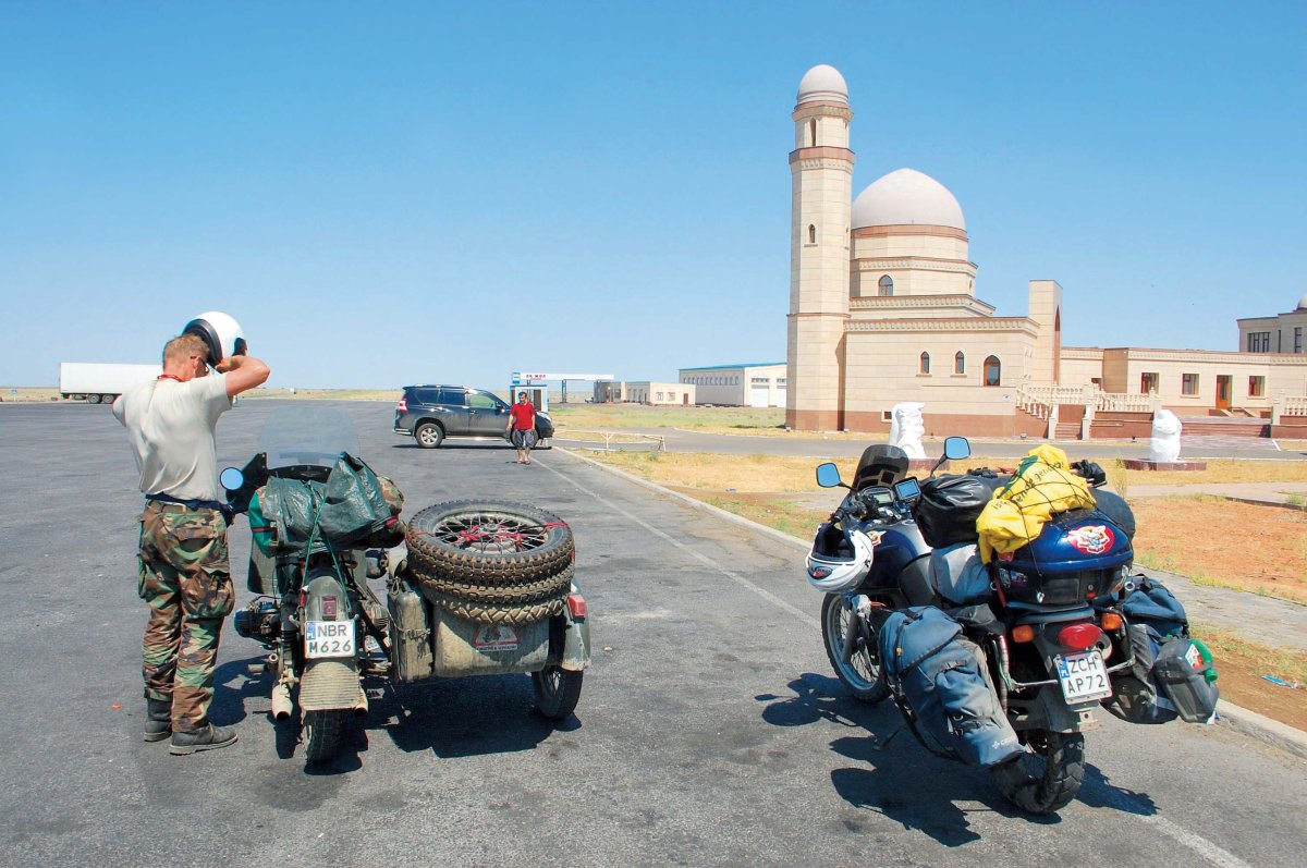 Ural dokładnie przetestował nerwy właściciela pod Kyzylordą. 30 kilometrów przed miastem urwał się w przednim kole uchwyt zacisku hamulcowego. Zerwał przy tym końcówkę węża hamulcowego w stalowym oplocie. Makabra. Bez przedniego hamulca pojechaliśmy dalej. Przed miastem trafiliśmy na budowę, gdzie znalazła się spawarka, szlifierka i kawałek rurki na tulejkę. Brakowało tylko przewodu hamulcowego, lecz wyjąłem go z sakwy. Zdziwiony partner poskładał wszystko do północy. Z kolei w Freewindzie pod Ałmatą padł starter zalany przez deszcz. Staliśmy pod sklepem w jakiejś wiosce, skąd już nie mogłem odjechać. Chodziłem od domu do domu, aż załatwiłem kawałek grubego przewodu. Wojtek na krótko zmostkował z rozrusznikiem. Tu poznaliśmy Yerdosa, kazachskiego podróżnika, który sprezentował mi zastępczy włącznik.