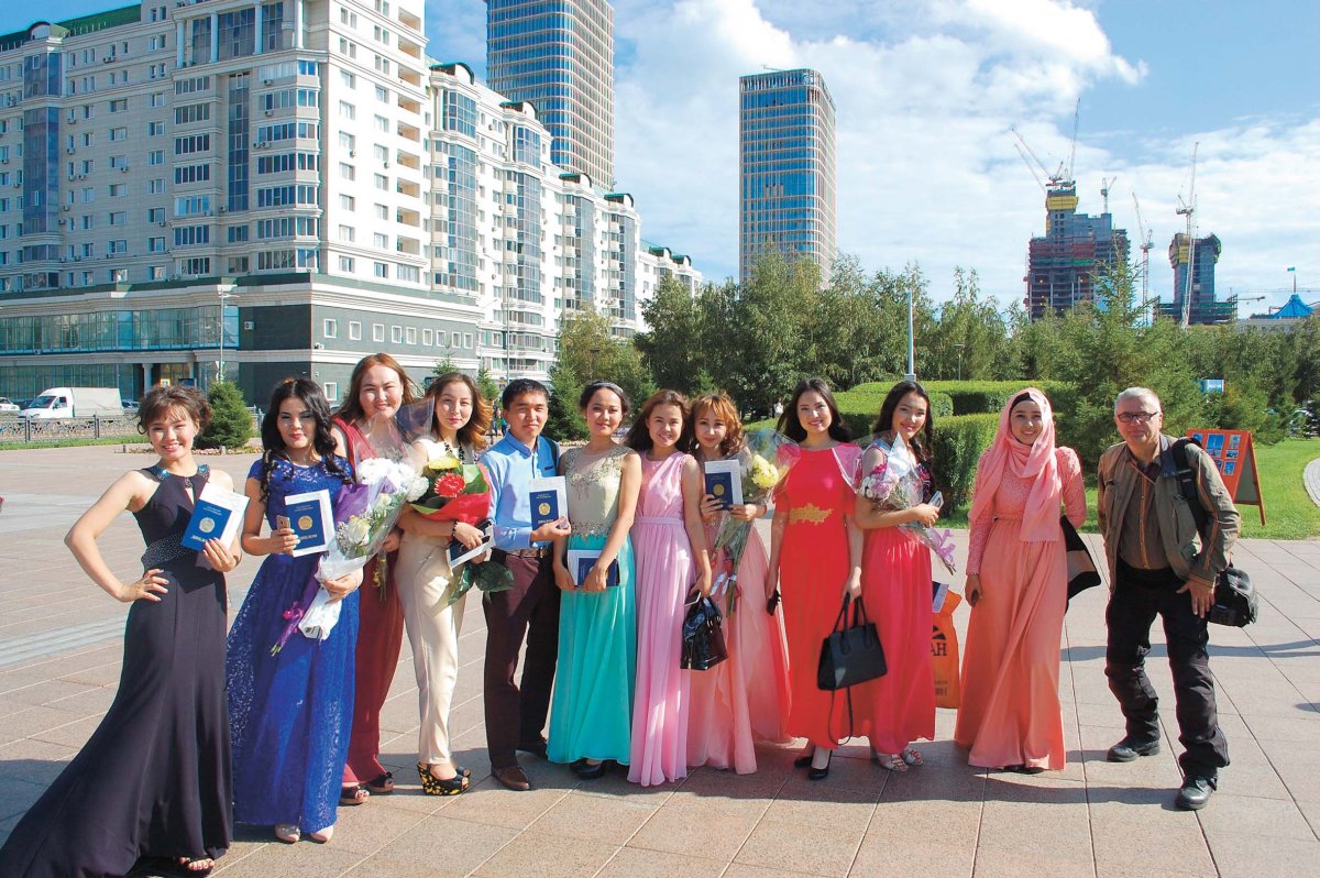 Fot. powyżej: Absolwentki Uniwersytetu Euroazjatyckiego w Astanie.