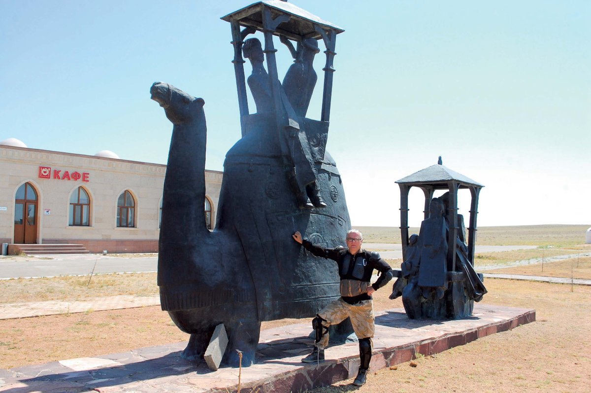 Wspomnę jeszcze jazdę przez step w zachodnim Kazachstanie. Kilka lat temu tamtejsze drogi cieszyły się złą sławą. My zastaliśmy generalnie dobrą nawierzchnię, rzadko urozmaicaną zapadniętym asfaltem. Teren bezludny, trzeba się liczyć z odcinkami po 400 km bez możliwości tankowania. Po drodze występują silne wiatry, powodujące burze piaskowe. Poza tym dzikie konie i wielbłądy. Lecz trafialiśmy i na „misiaka z suszarką”… Żar dokuczał tak, że na postoju nieraz chroniliśmy się w cieniu tira, dzieląc się z kierowcą łykiem chłodnej wody z termosu.