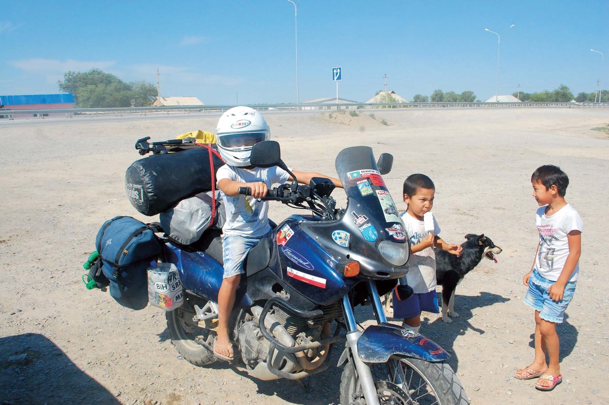 Zawsze mnie zastanawiało, skąd tyle mitów krążących o niebezpieczeństwach na Wschodzie. Pewnie to wina samych motocyklistów. Pewien warszawski sprzedawca części motocyklowych opowiedział mi historię z podróży nad Bajkał, kiedy pijany milicjant przystawiał mu lufę pistoletu do głowy. Śmiałem się przez dwa dni. Kto jeszcze nie odwiedził Rosji czy Azji, niech się nie boi. Ludzie są tu przyjaźni, pomocni i gościnni. W Kellerovce długo nie czekaliśmy na zaproszenie do domu. Rodzina z polskimi korzeniami zadbała szybko o nasze żołądki i gardła. Przypadkowo spotkany na stacji paliw bajker z Ałmaty poprowadził autem do miasta. Jeździliśmy po wędkarskich sklepach za butami, bo byłem w potrzebie, a zakupów dokonaliśmy ostatecznie w sklepie wojskowym. Oszczędziłem przy tym