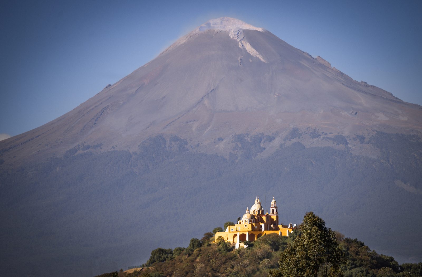Usiedliśmy na pieńku, kierując twarze w stronę słońca. Ponad gęstymi lasami na wschodzie i zachodzie górowały szczyty dwóch wulkanów – wciąż aktywnego Popocatépetl i uśpionego od lat Iztaccíhuatl. Według legendy, Popocatépetl był niegdyś azteckim wojownikiem, który chcąc zasłużyć na rękę swojej ukochanej Iztaccíhuatl, wyruszył na wojnę. Ukochana latami czekała wiernie na jego powrót, lecz gdy doszły do niej słuchy, że Popocatépetl zginął w walce, umarła z rozpaczy. Popocatépetl jednak wrócił cały i zdrowy, a dowiedziawszy się, co się stało z jego ukochaną, zabrał jej ciało na szczyt góry, chcąc tam pogrzebać i ją, i siebie. Azteccy bogowie zlitowali się nad parą zakochanych i zamienili ich w dwa wulkany. I tak trwają do dziś – wiecznie śpiąca Iztaccíhuatl i czuwający przy niej, wyrzucający z siebie gniewnie dym Popocatépetl.