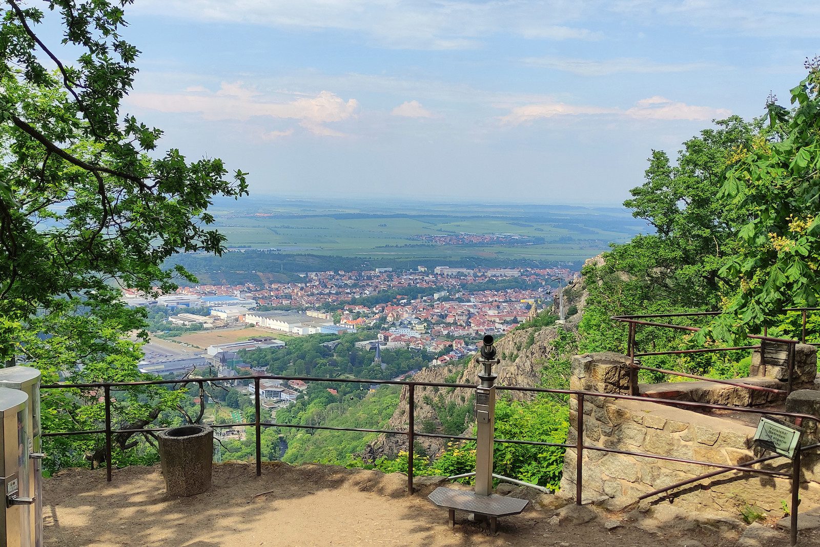 Góry Harzu nie są wysokie, ale ofitują w punkty widokowe takie jak ten, który rozpościera się z Hexenanplatz na miasto Thale.