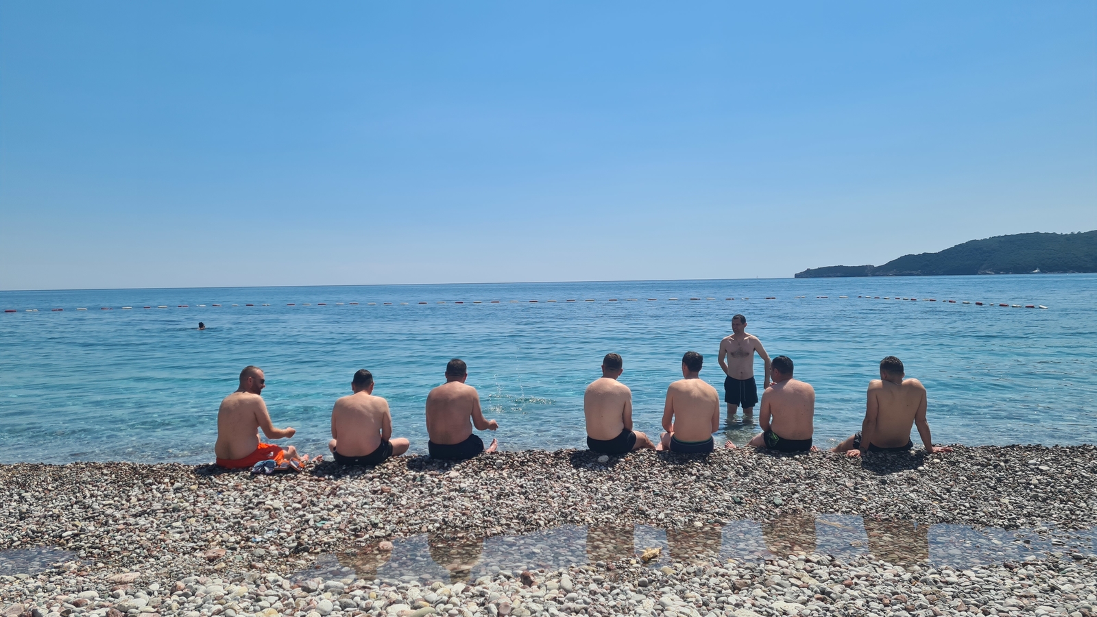Dopadł nas w końcu poranek. Jakoś kawka nie smakowała tak dobrze jak zawsze… Nie było co płakać – był to czas na „plażing, smażing i chill”. Dzień poświęciliśmy na leczenie ka… tzn. leniuchowanie, kąpiele w morzu, rekonstrukcje zdarzeń z dnia poprzedniego oraz zwiedzanie Budvy.