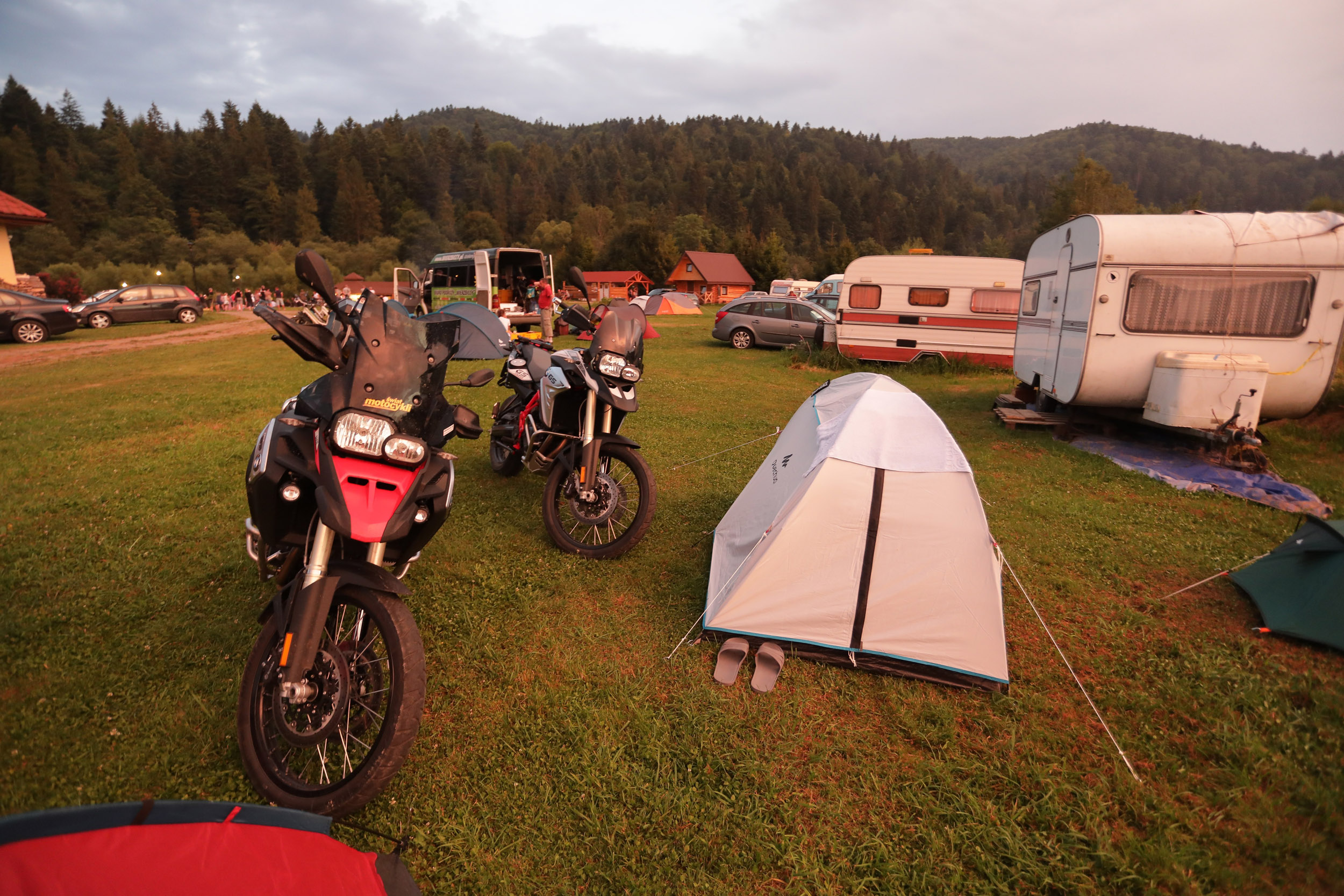Lech z towarzyszami zgarnęli wszystkie trzy sztuki, objuczyli je w torby, przytroczyli namioty i dali długą w Bieszczady. Pierwszy przystanek zrobili w gościnnym domu Zosi i Erwina w Odrzykoniu, a następnie ruszyli w kierunku „prawdziwych” Bieszczad i na chwilę zakotwiczyli w Gęsim Zakręcie koło Ustrzyk Dolnych żeby przypomnieć sobie na trialówce to i owo przed wpakowaniem się na co mniej utwardzone szlaki. Potem skok do Bieszczadzkiej Przystani Motocyklowej (swoją drogą polecamy, najtaniej jak na pole namiotowe nie jest, ale warunki doskonałe) jak co dzień objazdówka po okolicznych winklach i ostatnie biwakowanie w Cisnej, już w mniejszych luksusach, ale nie to było najważniejsze, bo klimat i dobre nastawienie nie opuszczało.