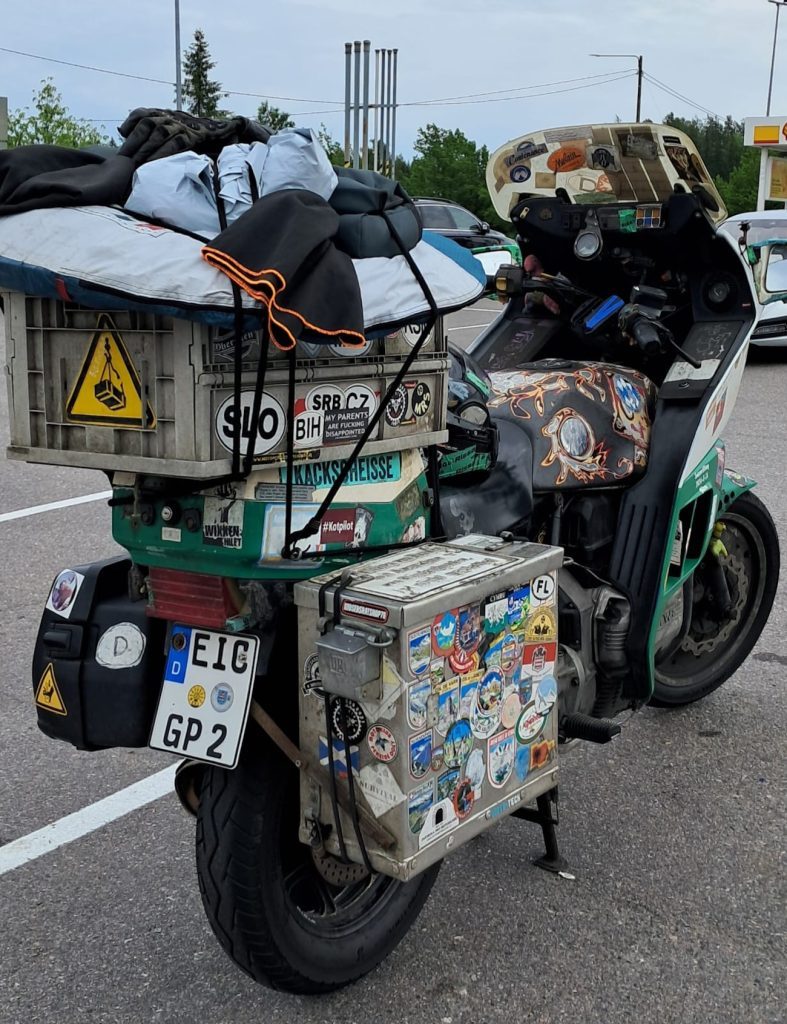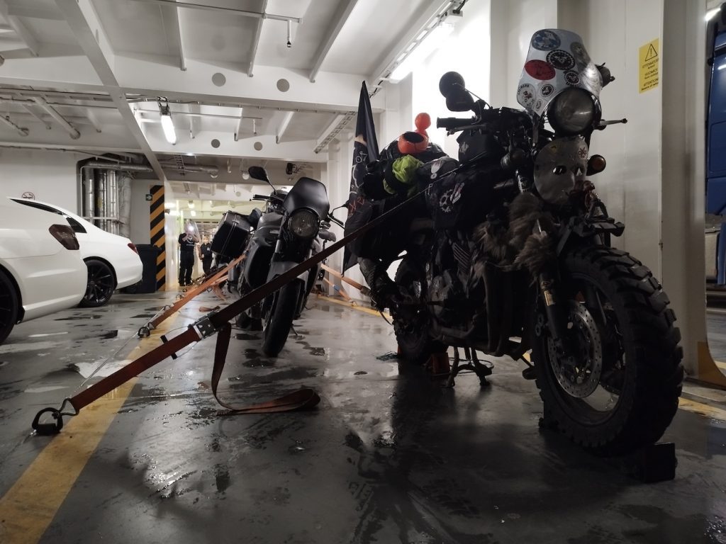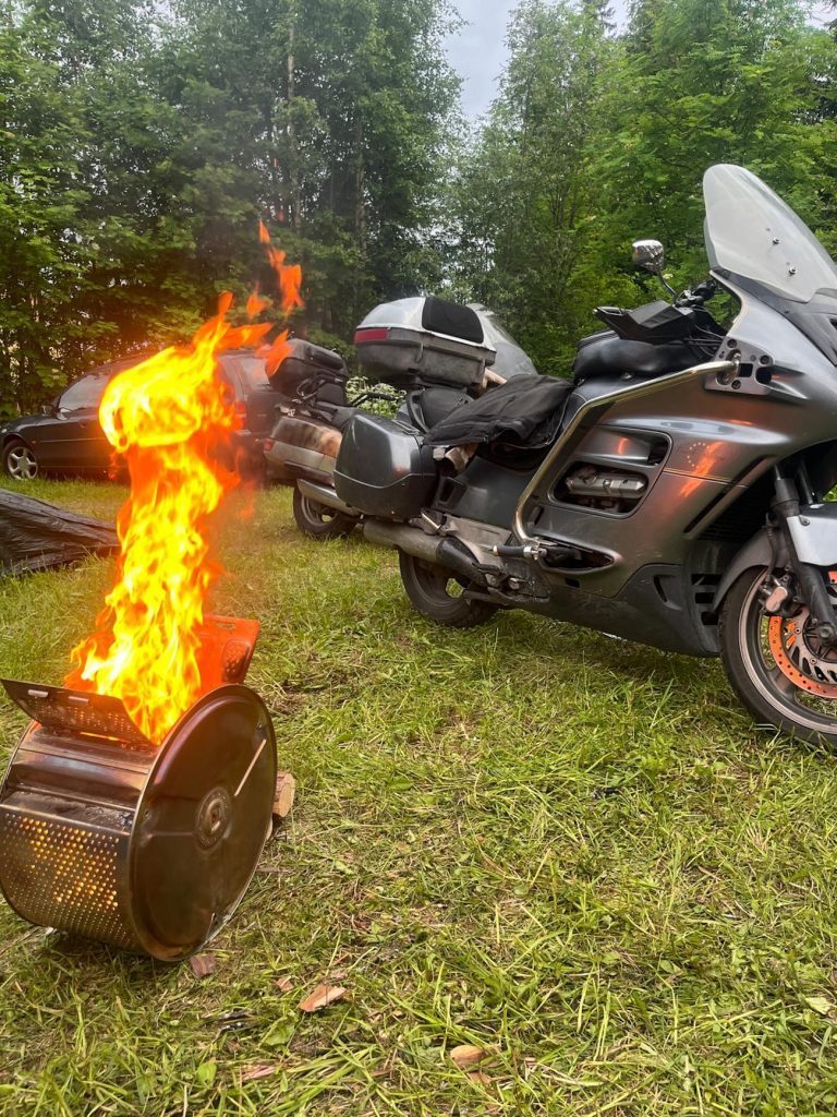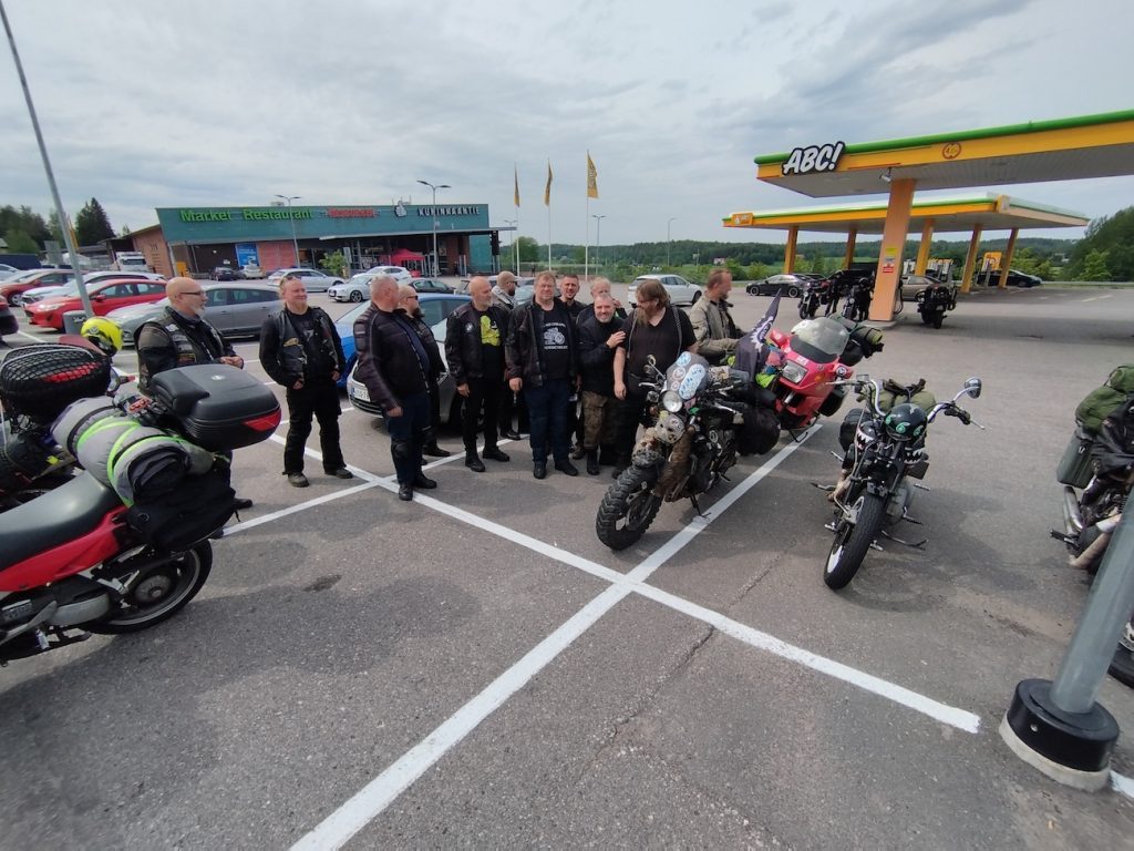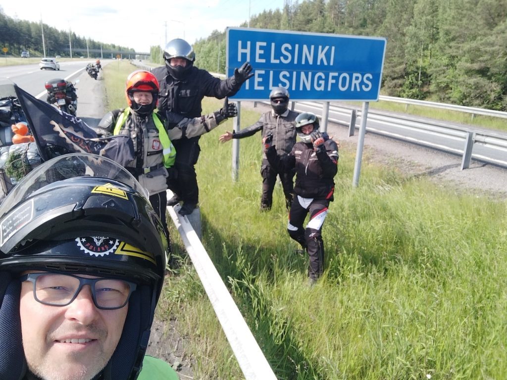 Droga przez Litwę, Łotwę i Estonię trasą via Balticą przebiegła bez większych emocji, można powiedzieć nudnawo – 700 km w 15 motocykli beż żadnych strat po drodze i narzekań. Małoletni Paweł zaimponował wszystkim swoja wytrzymałością, tak samo jak jedyna w ekipie kobieta – Meli, która przyjechała z Niemiec na własnym Fazerku. Następnego dnia miała miejsce przeprawa do Helsinek, a kilkanaście kilometrów od mety zaczęła się odyseja Tofika, któremu VFR-ka zgubiła ładowanie. Ku zdziwieniu wszystkich, wiozłem ze sobą zapasową baterię, więc udało mu się dojechać razem do „clubhousu” BONEHEADS MC, gdzie mieliśmy zaplanowany pierwszy nocleg. Przyjęci zostaliśmy bardzo serdecznie przez gospodarzy, rozmowom nie było końca do późnej nocy. No i jak to zazwyczaj w Finlandii, sauna była obowiązkowa dla wszystkich. Wielkie dzięki za ten czas!