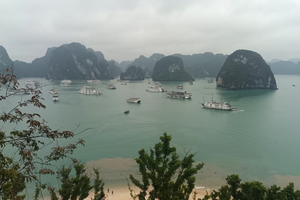 Zwiedzanie Ha Long Bay to nie czas na medytacje – mrowie statków i ludzi, a jednak widok zapadający w pamięć.