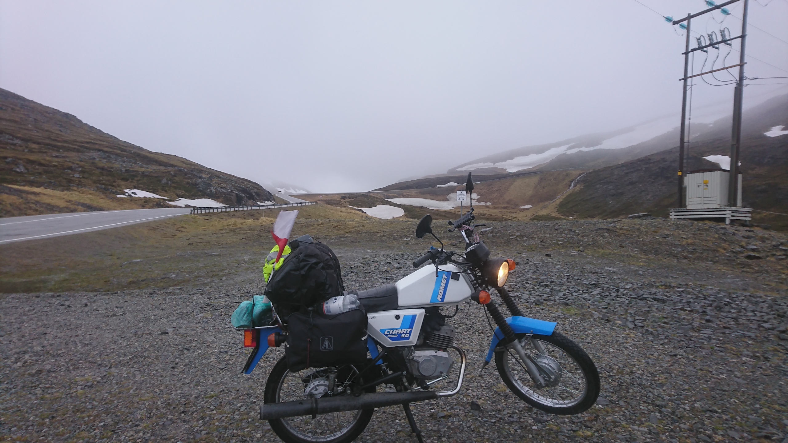 Największym wyzwaniem dla podróżnika i jego motoroweru wcale nie był ogromny dystans, a ostatnie 130 kilometrów. Trasę urozmaicały olbrzymie tunele i dosyć strome podjazdy, a temperatura nierzadko spadała do 3°C i wiał porywisty wiatr. Momentami dochodziło do tego, że motorower przez silne podmuchy zwalniał do 20 km/h, a kiedy wiatr zmieniał kierunek, trudno było kierowcy utrzymać tor jazdy. Dłonie i stopy przemarzały, sytuacji nie poprawiał deszcz. Bez grzanych manetek w takich warunkach jedzie się naprawdę trudno. Jedynym sposobem były częste przerwy i ćwiczenia na poboczu, które dają jakąkolwiek szansę na rozgrzanie organizmu.
