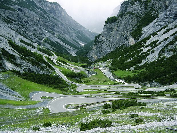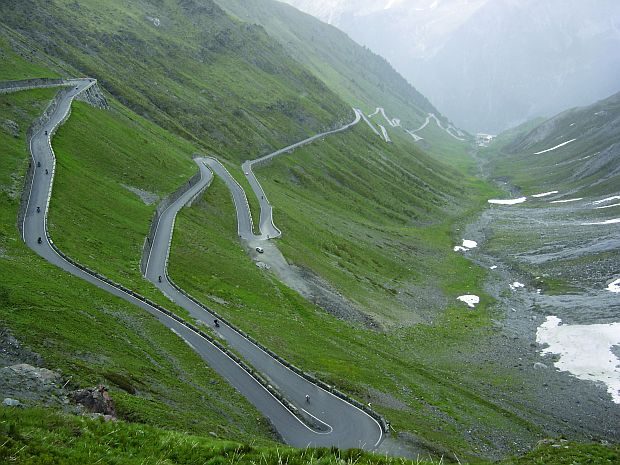 Ruszyliśmy w kierunku przełęczy Stelvio (Burninapass) we Włoszech, rozsławionej przez ekipę programu Top Gear. Gdy przejechaliśmy zaledwie 20 km, na niebie pojawiło się słońce i świeciło już do końca wyprawy. Późnym popołudniem stanęliśmy u podnóża Stelvio: czternaście kilometrów asfaltowych zawijasów wznoszących się na 2501 m n.p.m. czekało na zdobycie.