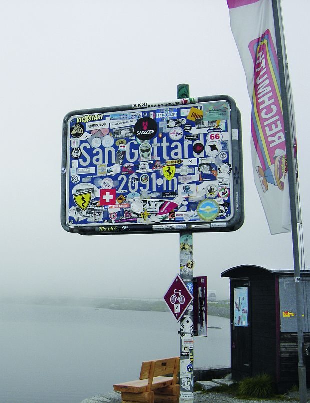 Z Airolo ruszamy zdobyć ostatnie przełęcze. Właścicielka pensjonatu odradza nam pchanie się w góry. Ryzykujemy i już po piętnastu minutach drogi na przełęcz Sankt Gotthard żałuję, że jej nie posłuchaliśmy. Ledwie widzę tego, który jedzie pięć metrów przede mną. Do tego droga jest brukowana, dziurawa i śliska.