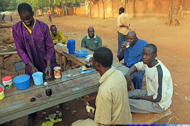 Nie wiem, co powiedział, ale rozlegają się brawa. Siadamy obok. Znów jestem zaskoczony, bo widzę, że kawa to jednak nie tylko zalanie wrzątkiem proszku, ale również ubijanie jej, przelewanie. Dopiero dziś zauważam, jak ciemny mają tu cukier.
